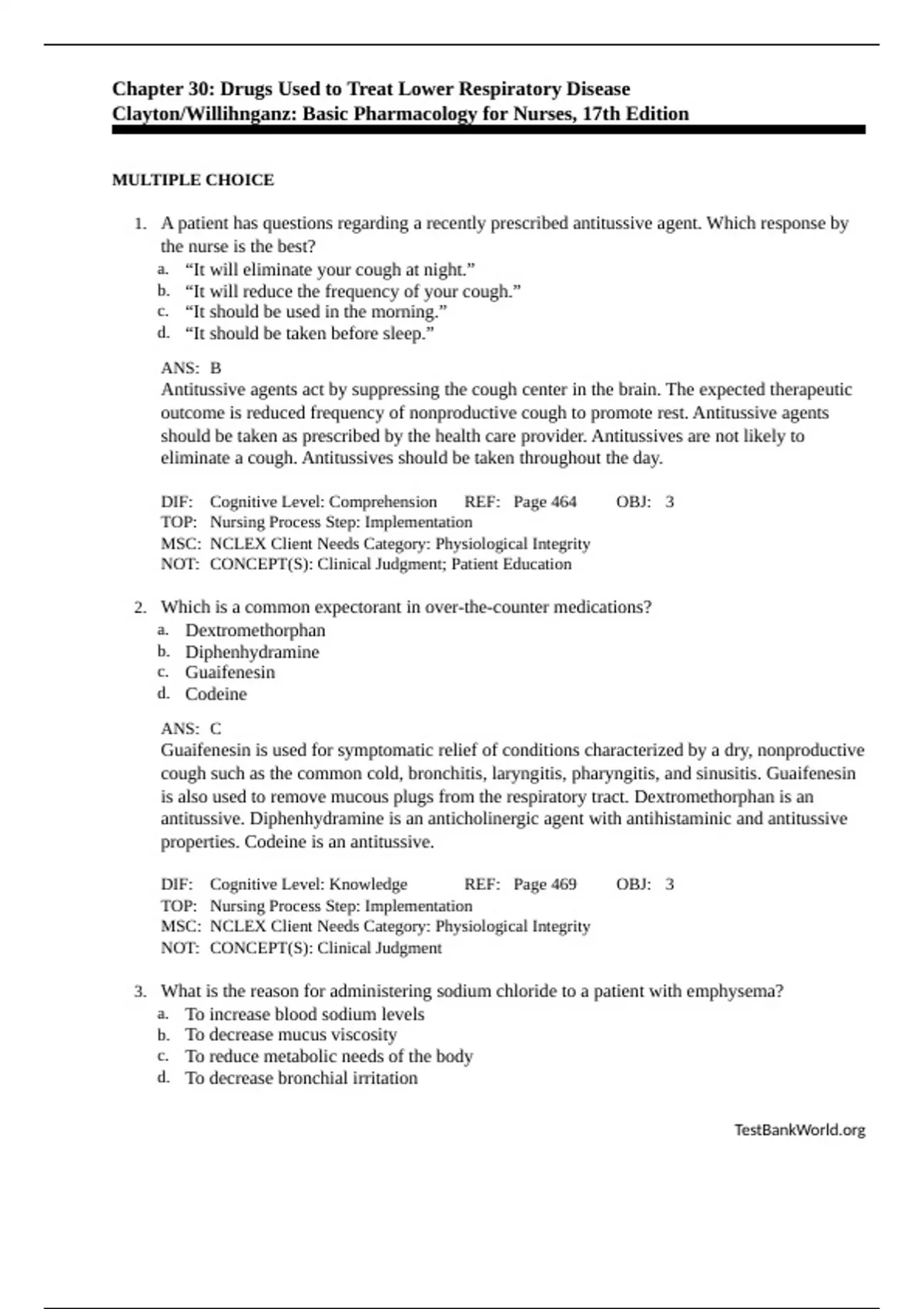 Test bank questions and answers