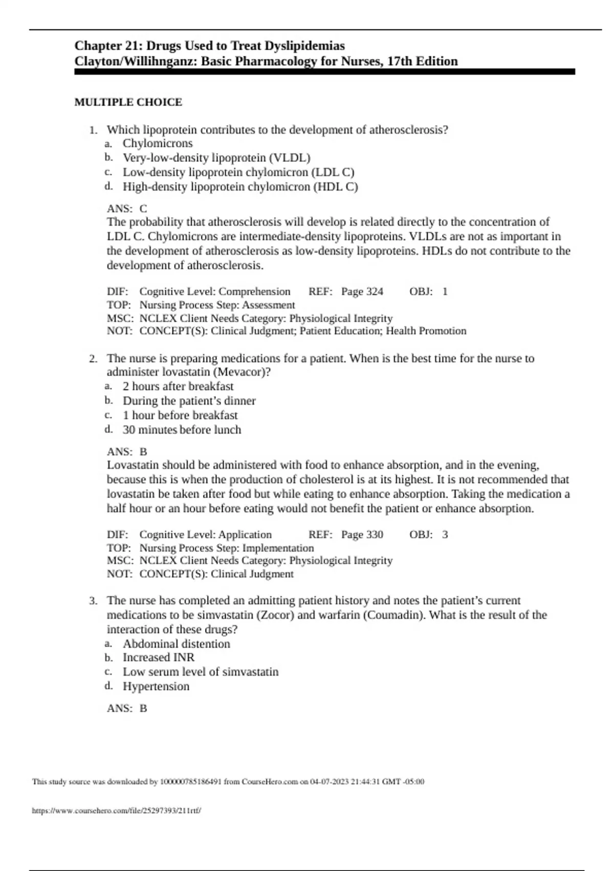 Test bank questions and answers