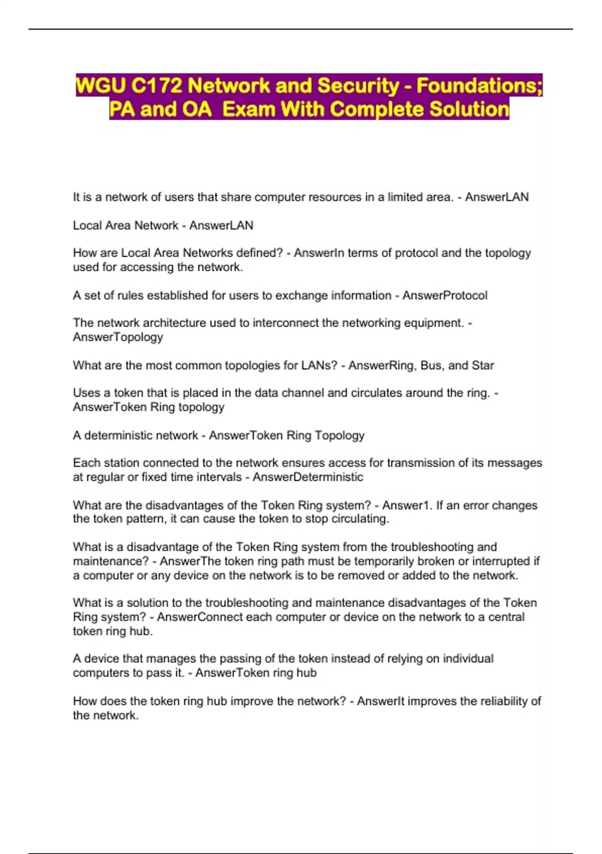 WGU C172 Network and Security - Foundations; PA and OA Exam With Complete Solution...
