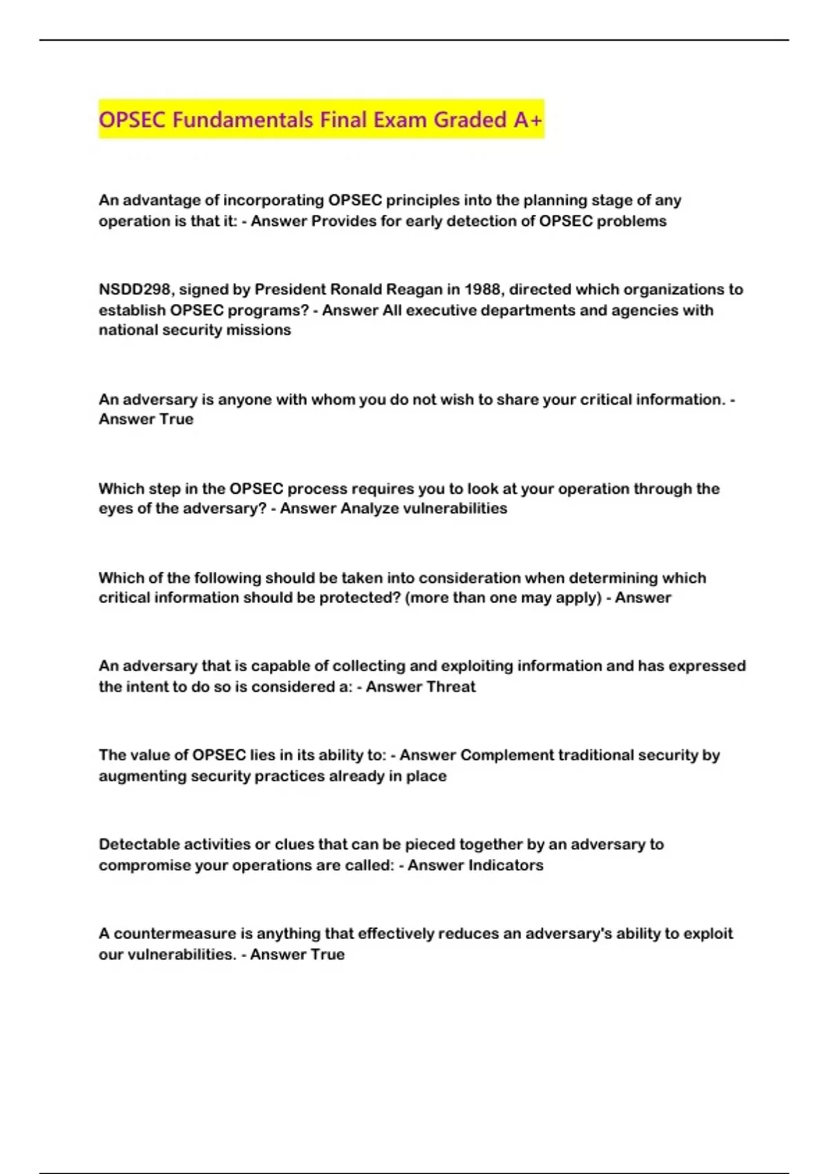 OPSEC Fundamentals Final Exam Graded A+...