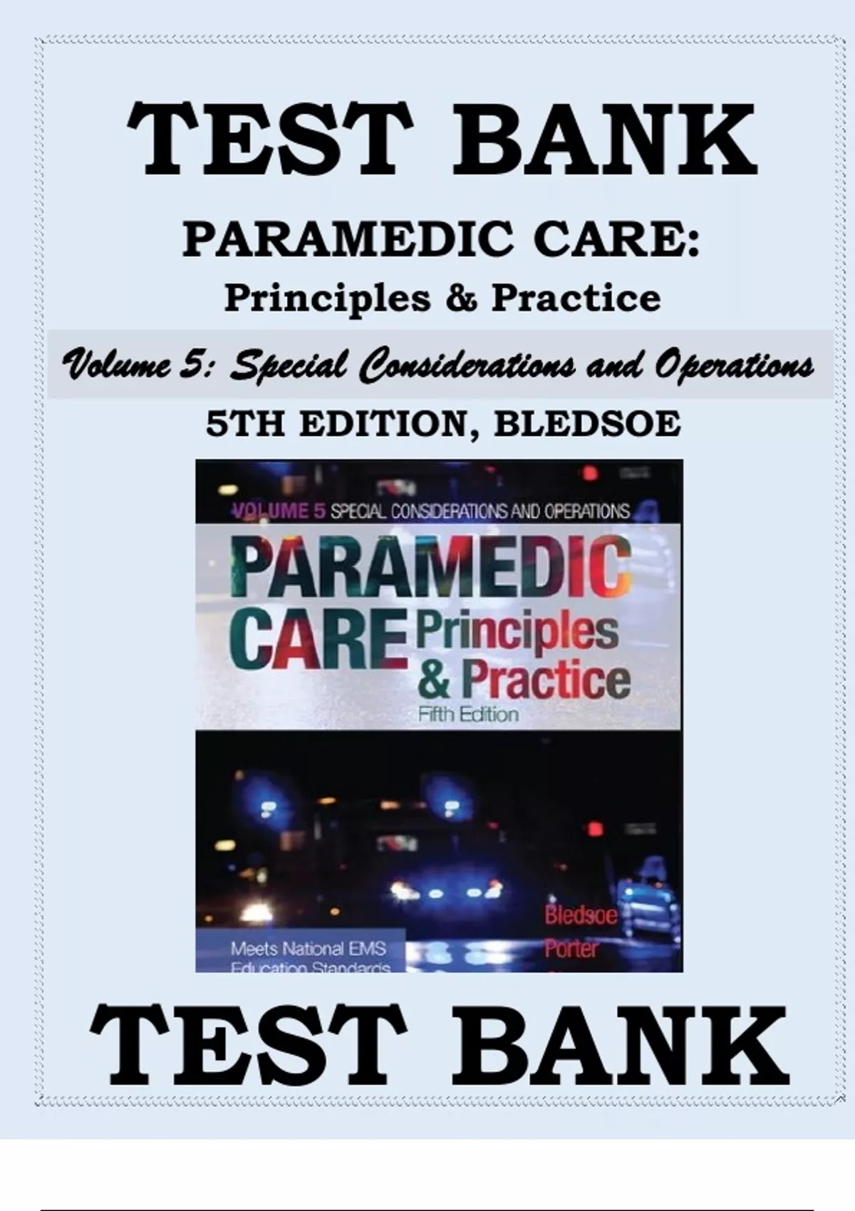 TEST BANK PARAMEDIC CARE- PRINCIPLES & PRACTICE, 5TH EDITION Volume 5 Special Considerations and Operations BLEDSOE