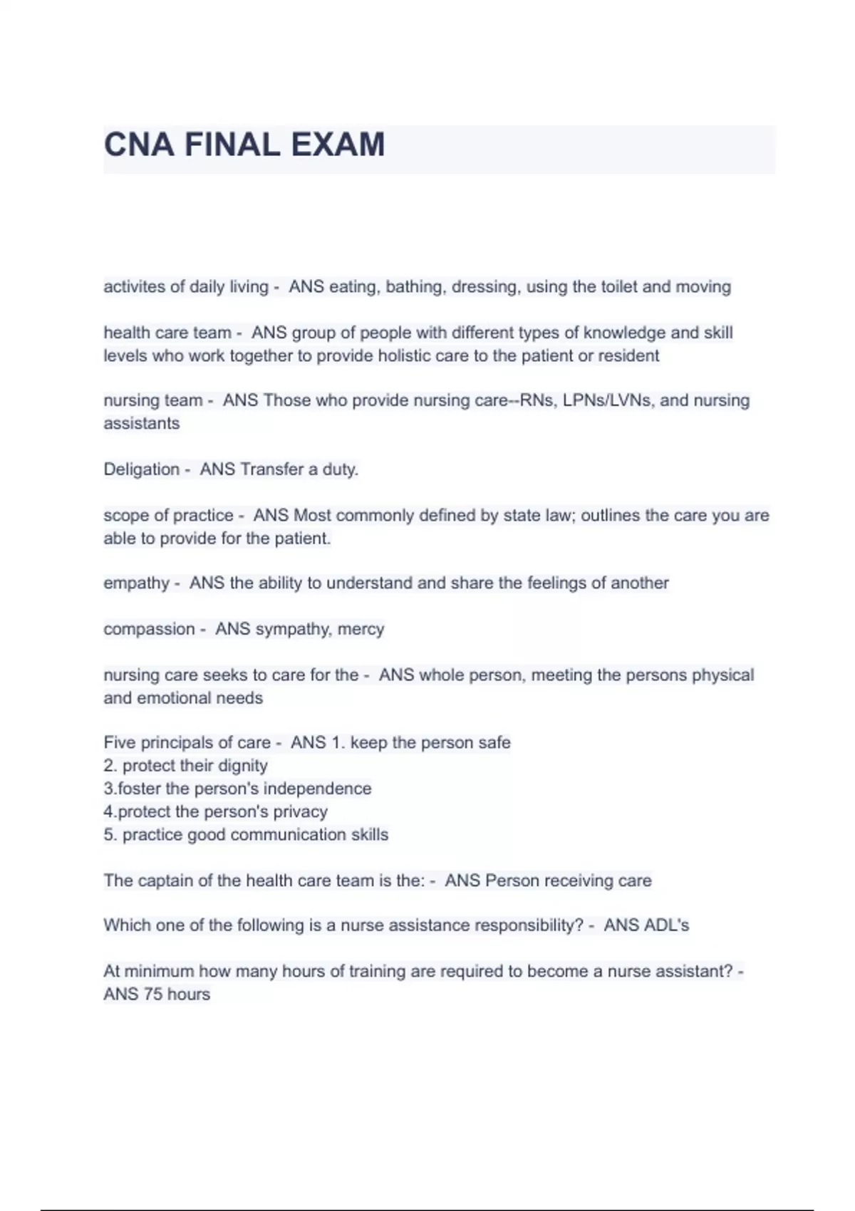 CNA FINAL EXAM Questions & Answers 2023 ( A+ GRADED 100% VERIFIED)