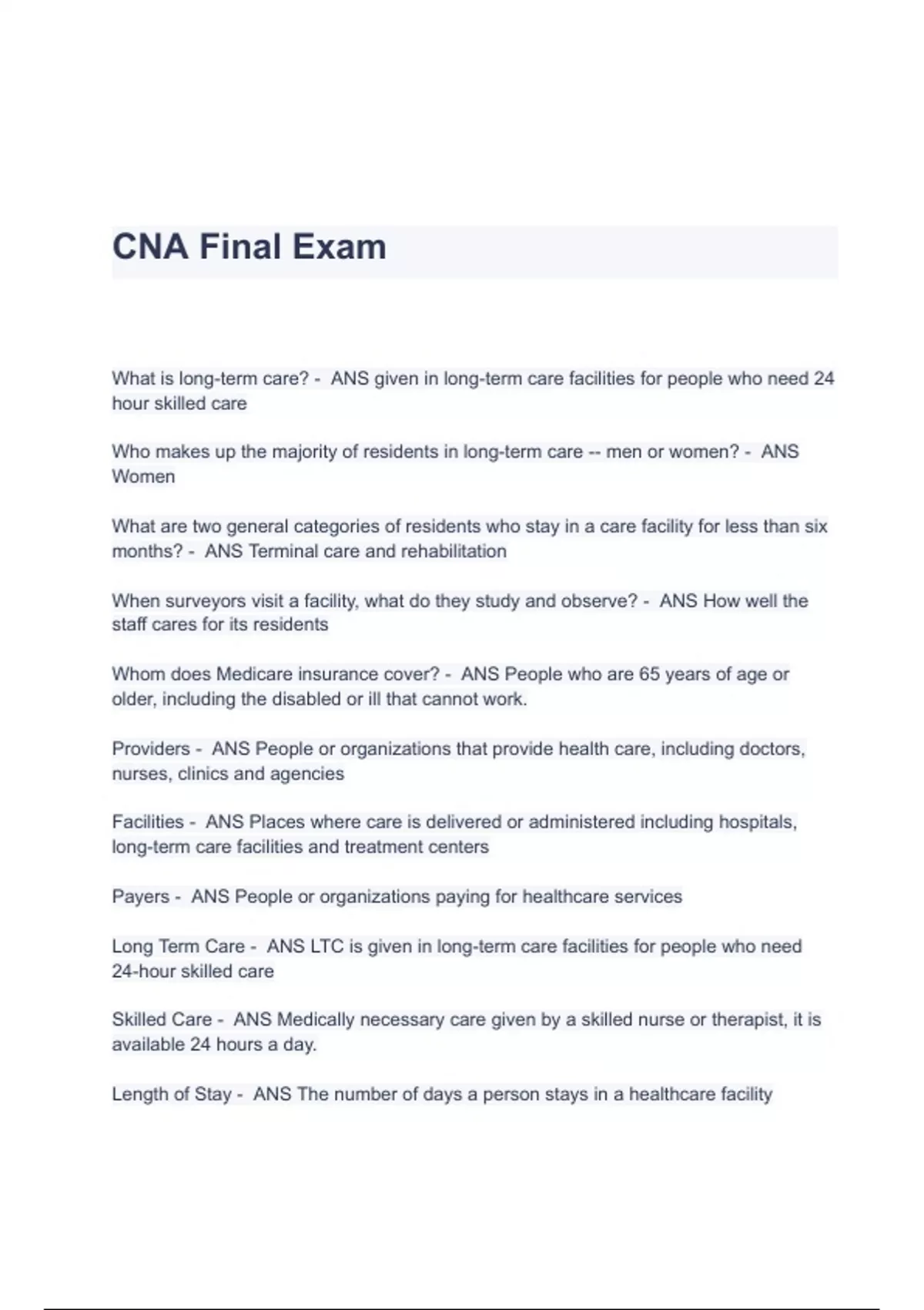 • cna final exam
