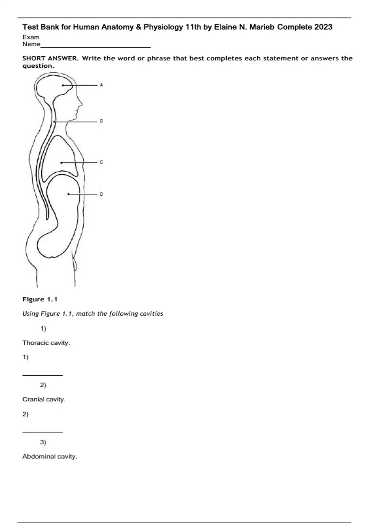 Test Bank for Human Anatomy & Physiology 11th by Elaine N. Marieb Complete 2023