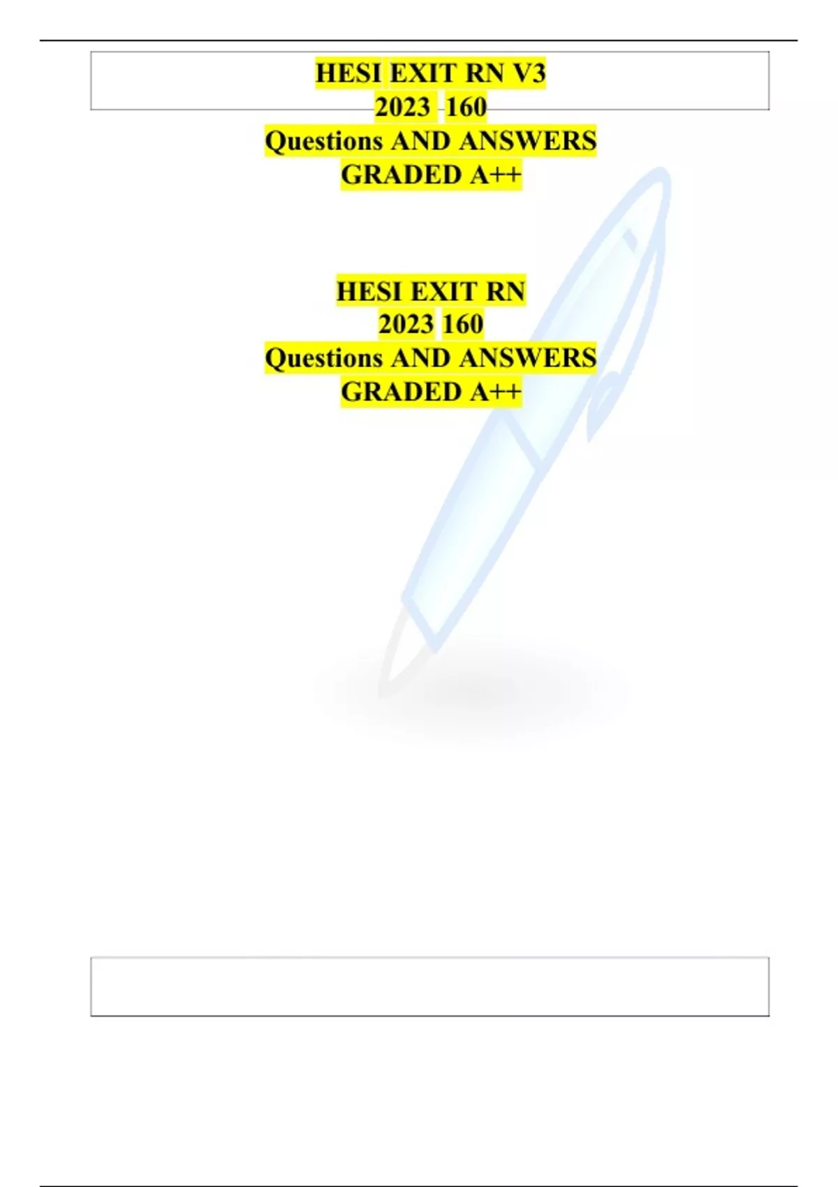 hesi exit rn v3 2023 160 questions and answers graded a