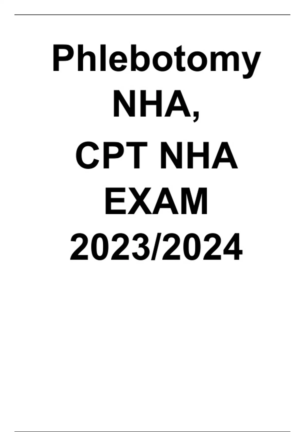 Phlebotomy NHA, CPT NHA EXAM 2023/2024