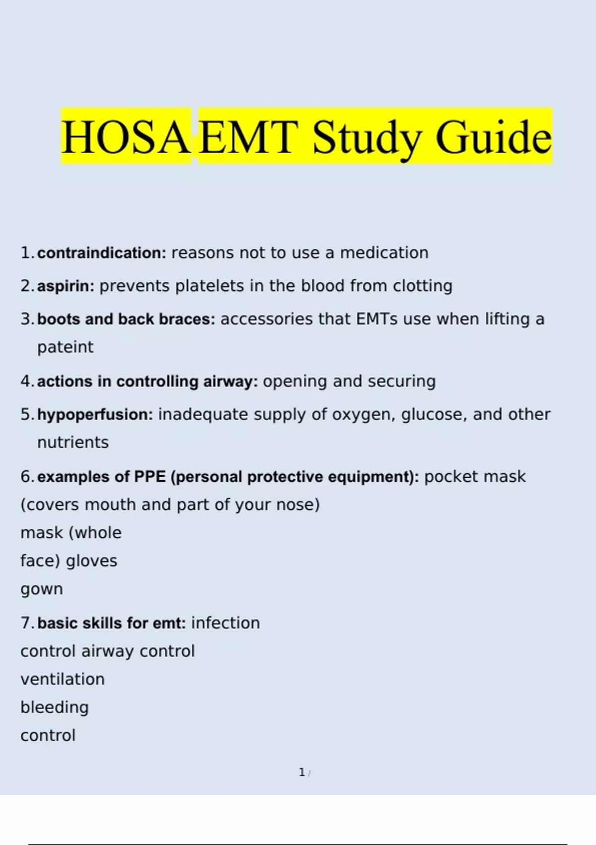 - hosa emt study guide