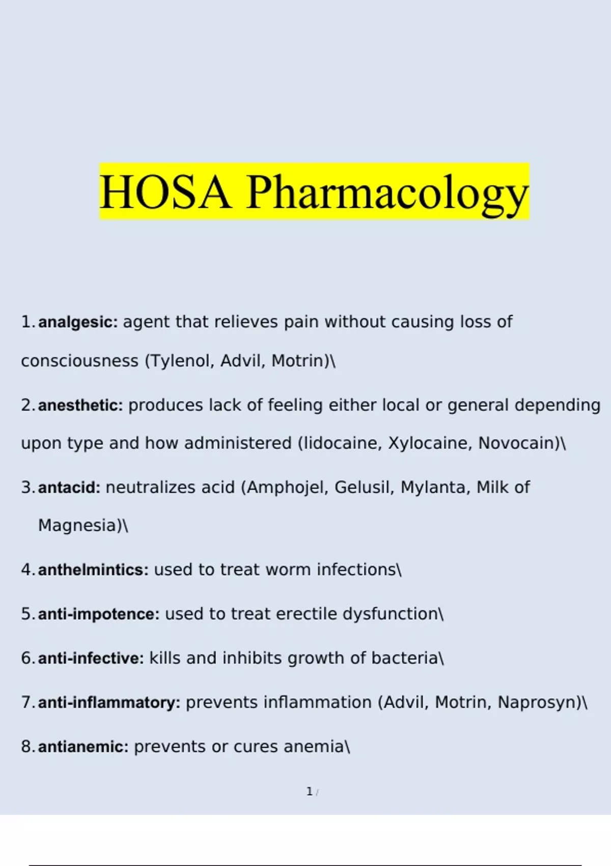 hosa pharmacology 2023 complete