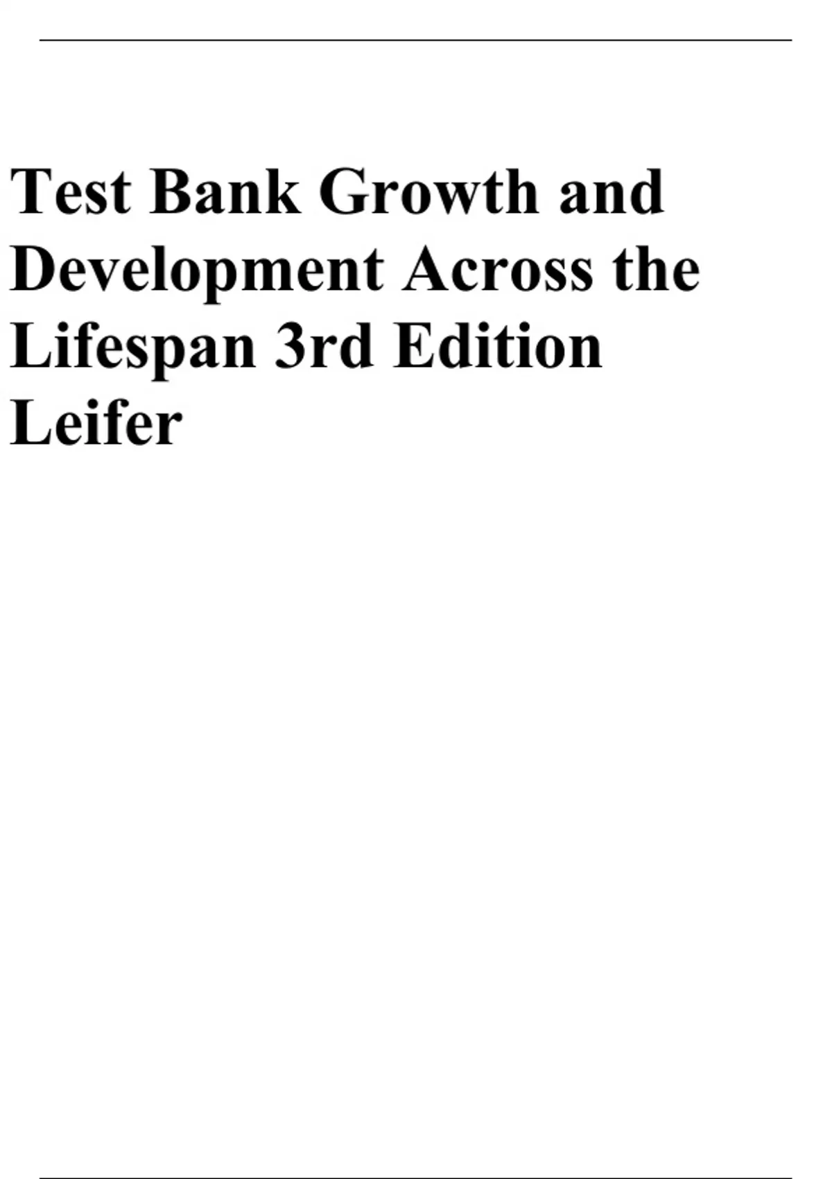 Test Bank Growth and Development Across the Lifespan 3rd Edition Leifer