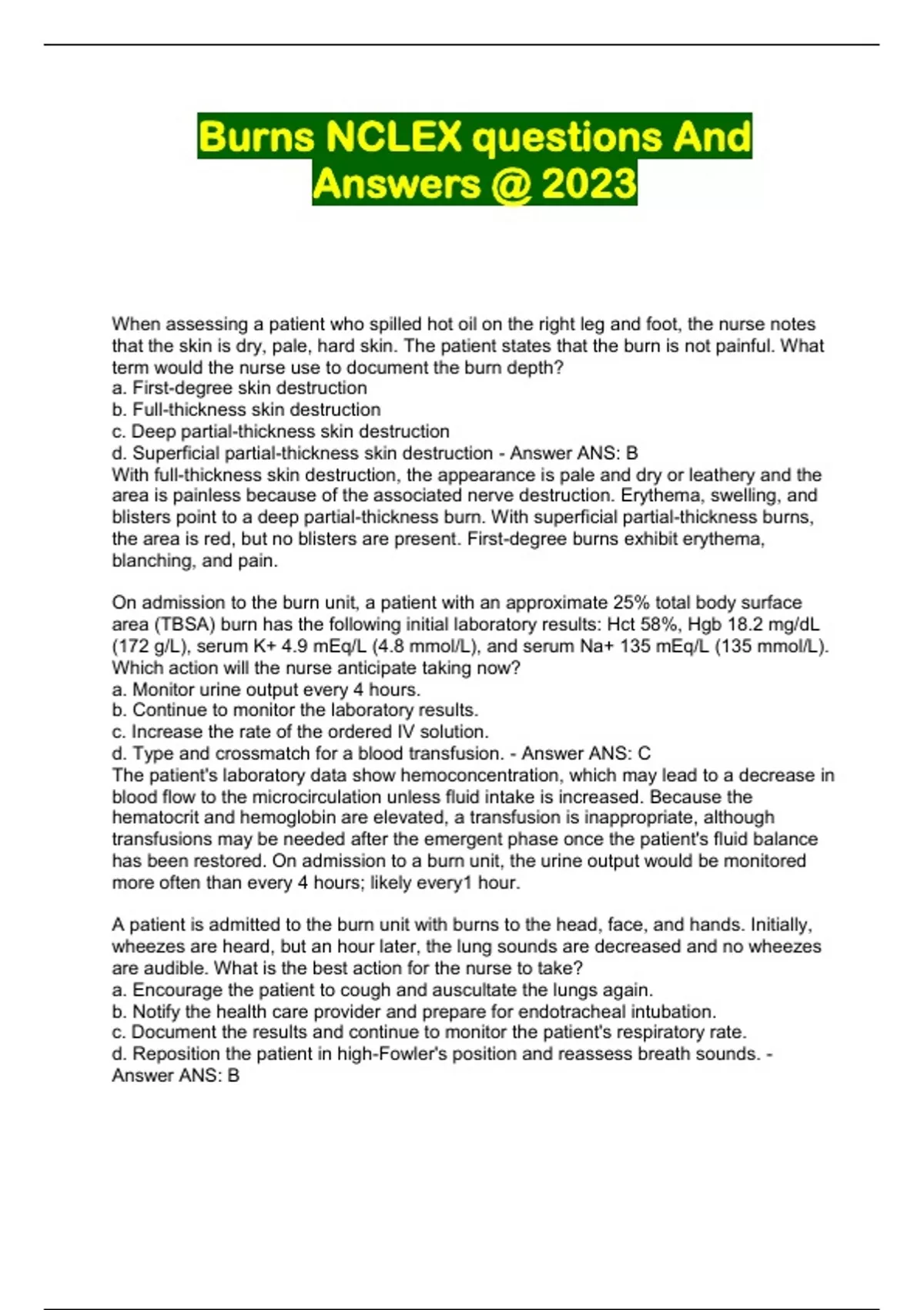 Burns NCLEX questions And Answers @ 2023...