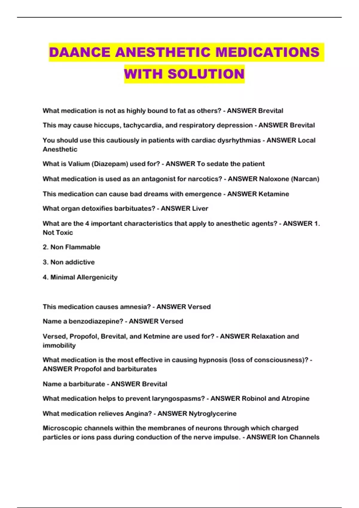 DAANCE ANESTHETIC MEDICATIONS WITH SOLUTION...
