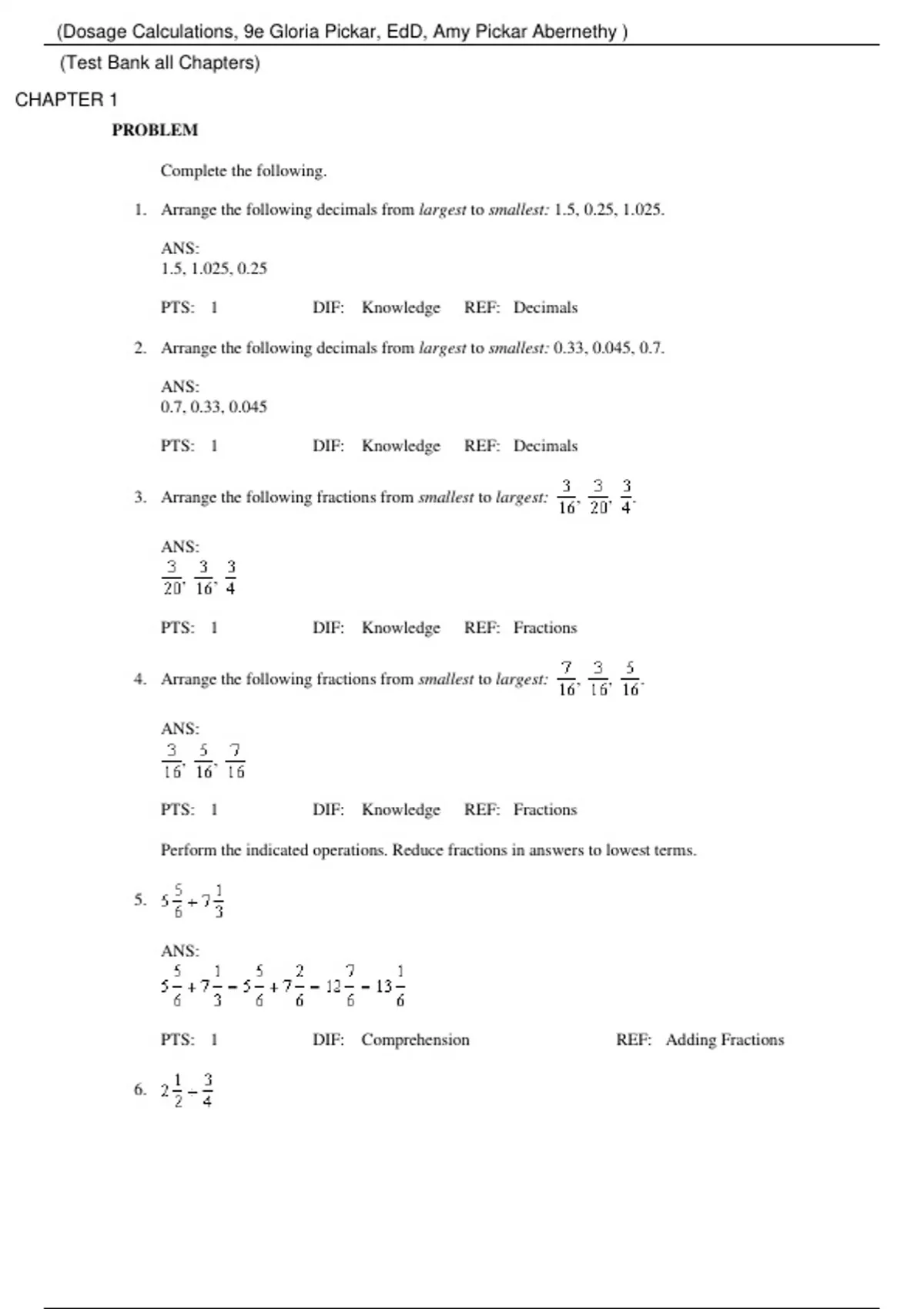 Dosage Calculations, 9e Gloria Pickar, EdD, Amy Pickar Abernethy (Test Bank) Dosage Calculations, 9e Gloria Pickar, EdD, Amy Pickar Abernethy (Test Bank)