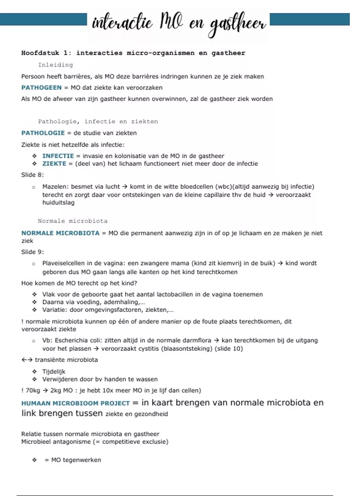 Een hele samenvatting van het vak interactie tussen MO en gastheer, dit zijn ook alle aantekeningen van tijdens alle lessen.