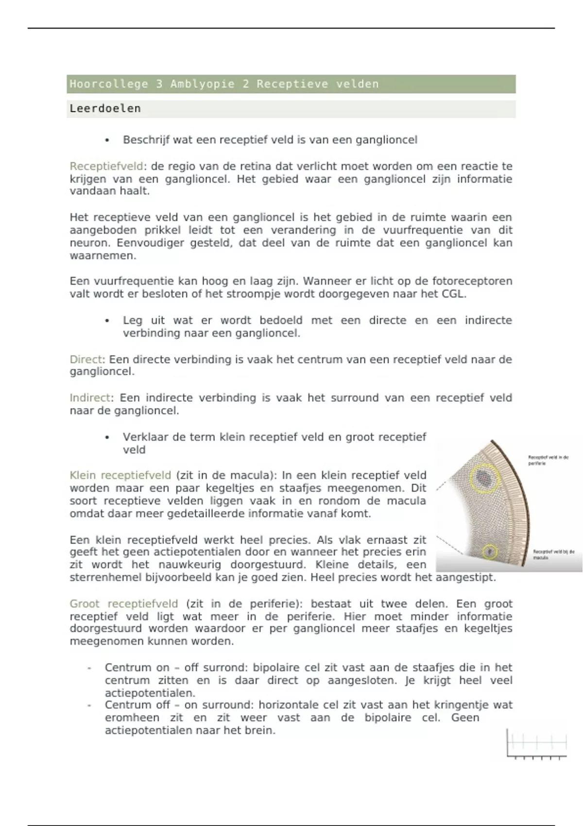 Groot receptiefveld (zit in de periferie): bestaat uit twee delen. Een groot