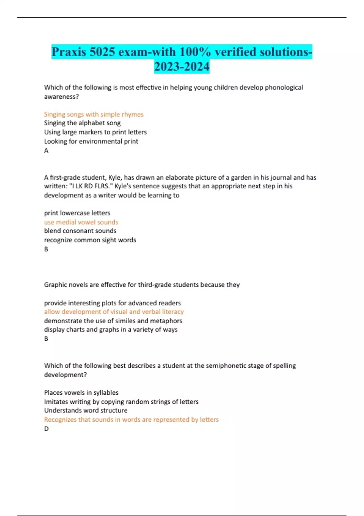 Praxis 5025 exam-with 100% verified solutions-