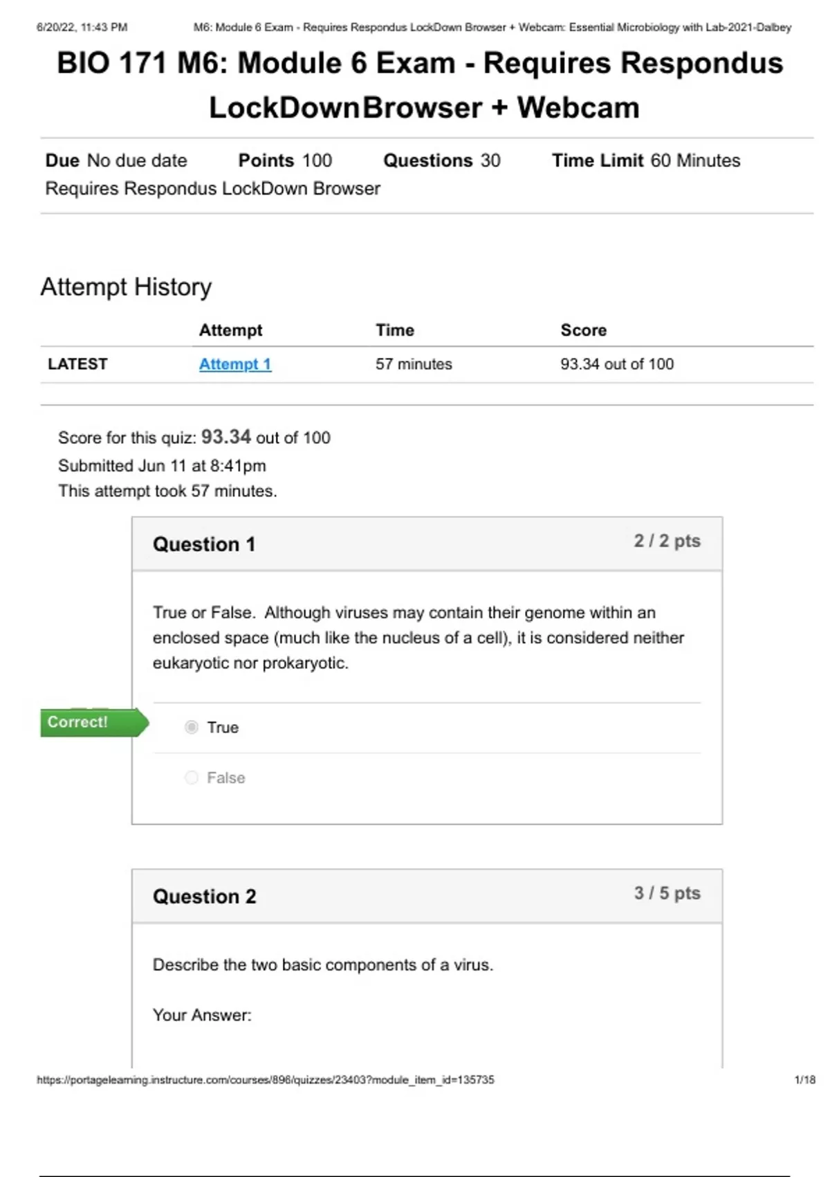 BIO 171 M6: Module 6 Exam Questions and Answers Portage Learning