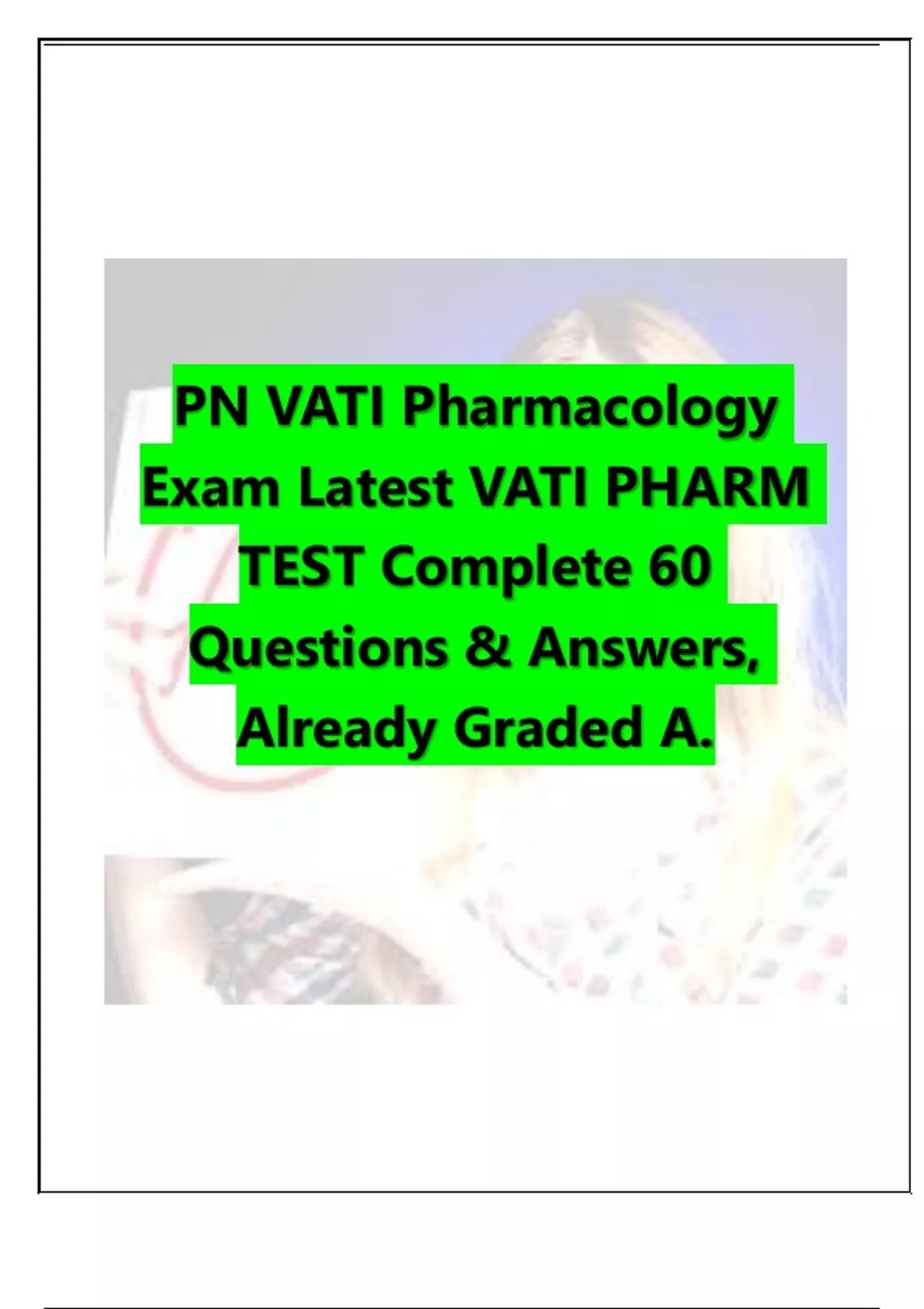 PN VATI Pharmacology Exam|Latest VATI PHARM TEST Complete 60 Questions & Answers,Already Graded A. 2023