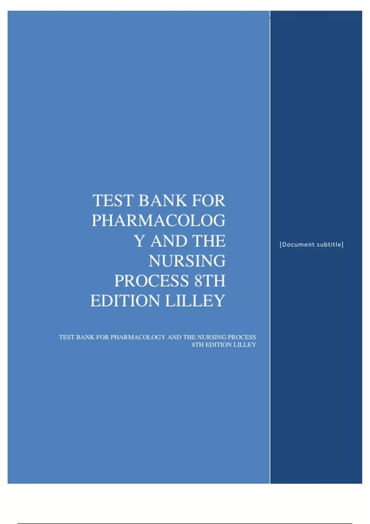 TEST BANK FOR PHARMACOLOGY AND THE NURSING PROCESS 8TH EDITION LILLEY. TEST BANK FOR PHARMACOLOGY AND THE NURSING PROCESS 8TH EDITION LILLEY TEST BANK FOR PHARMACOLOGY AND THE NURSING PROCESS 8TH EDITION LILLEY
