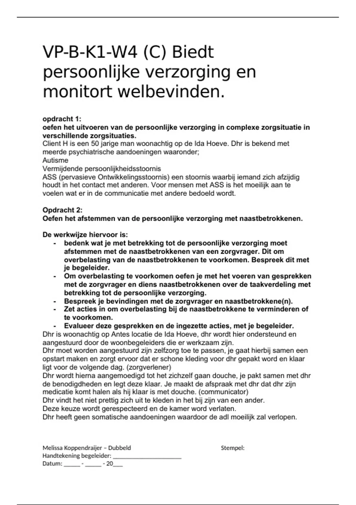 oefen het uitvoeren van de persoonlijke verzorging in complexe zorgsituatie in