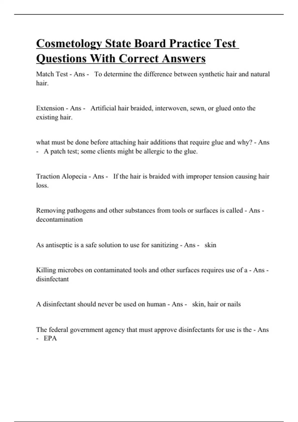 Cosmetology State Board Practice Test Questions With Correct Answers