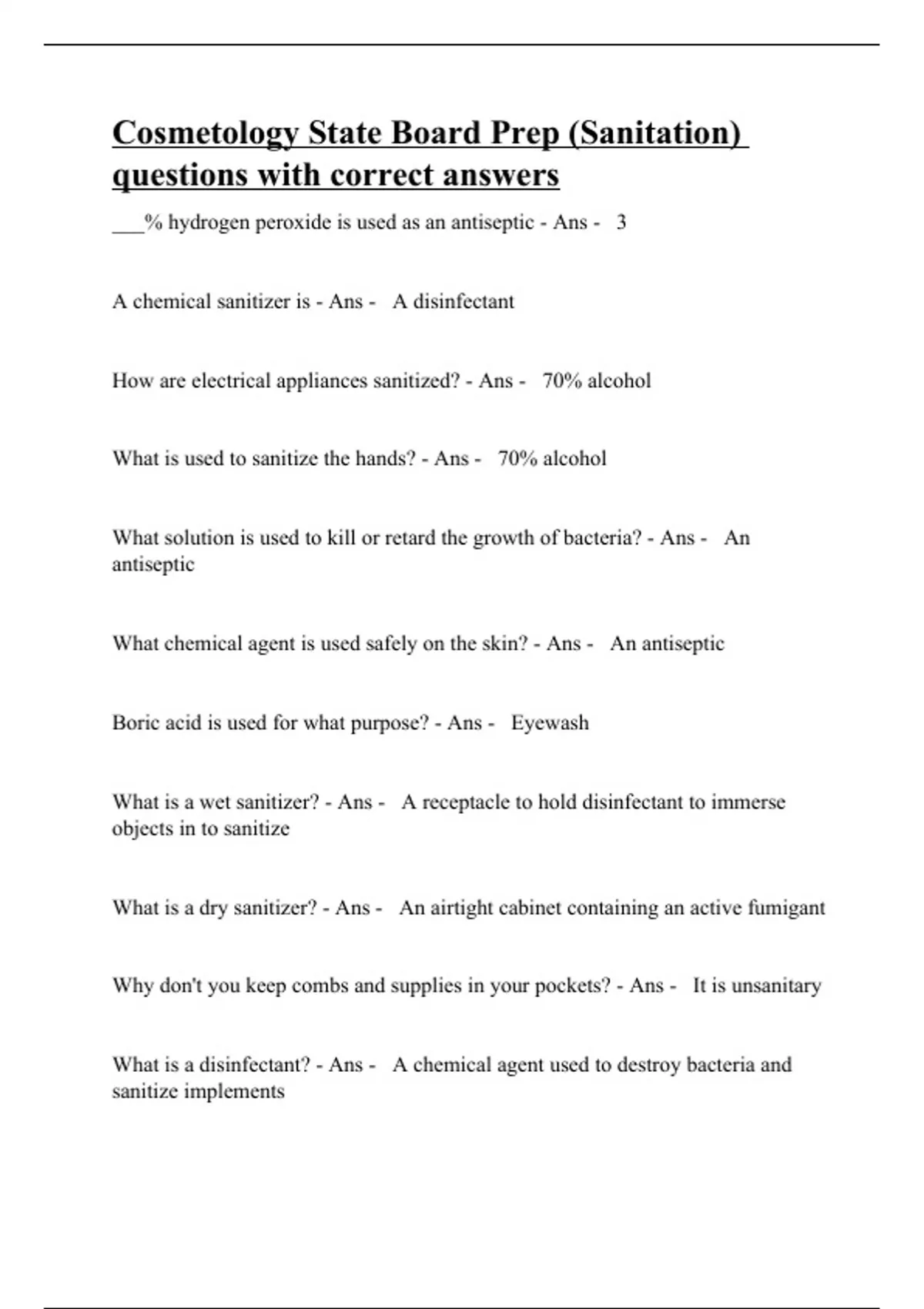 Cosmetology State Board Prep (Sanitation) questions with correct answers