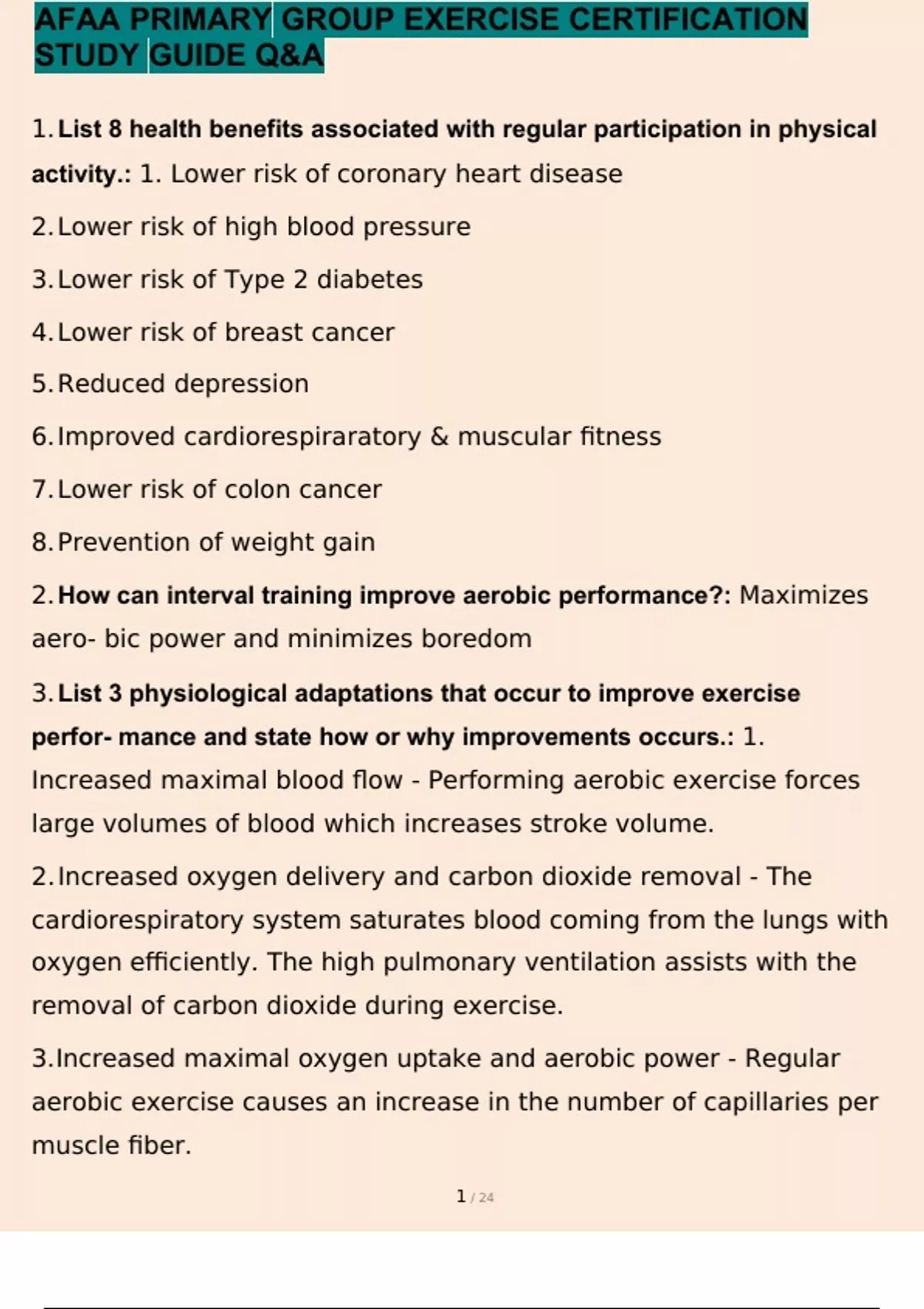 AFAA PRIMARY GROUP EXERCISE CERTIFICATION STUDY GUIDE QUESTIONS AND ANSWERS GRADED A+
