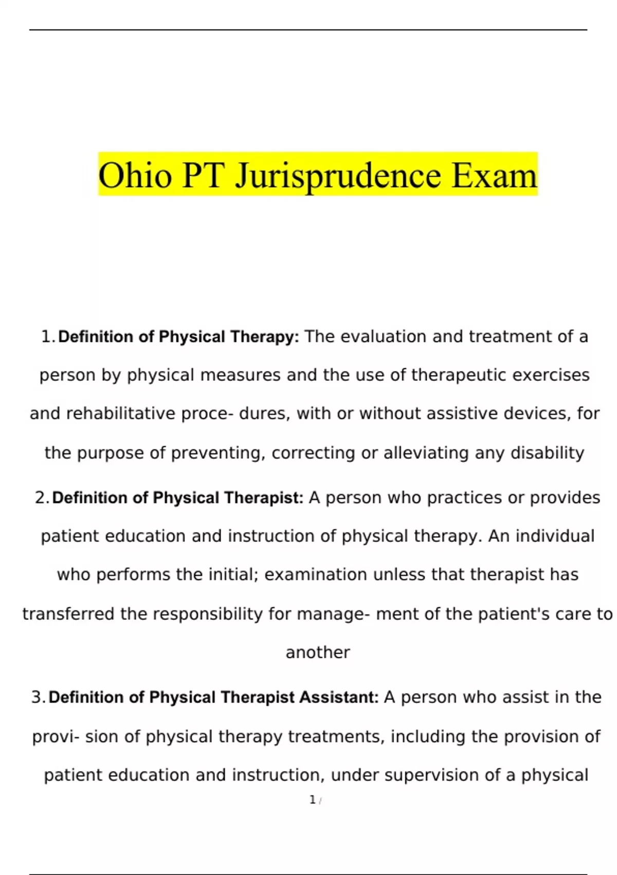 Ohio PT Jurisprudence Exam Test with complete Answers