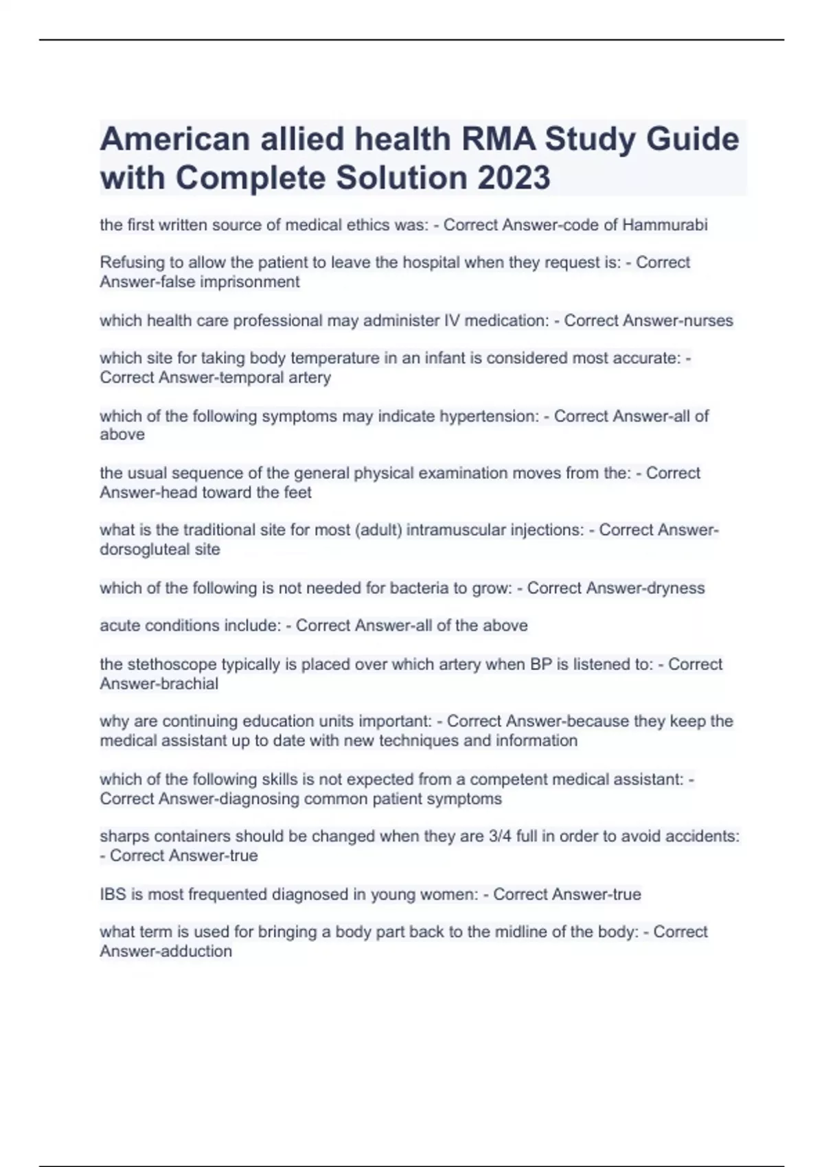 American allied health RMA Study Guide with Complete Solution 2023