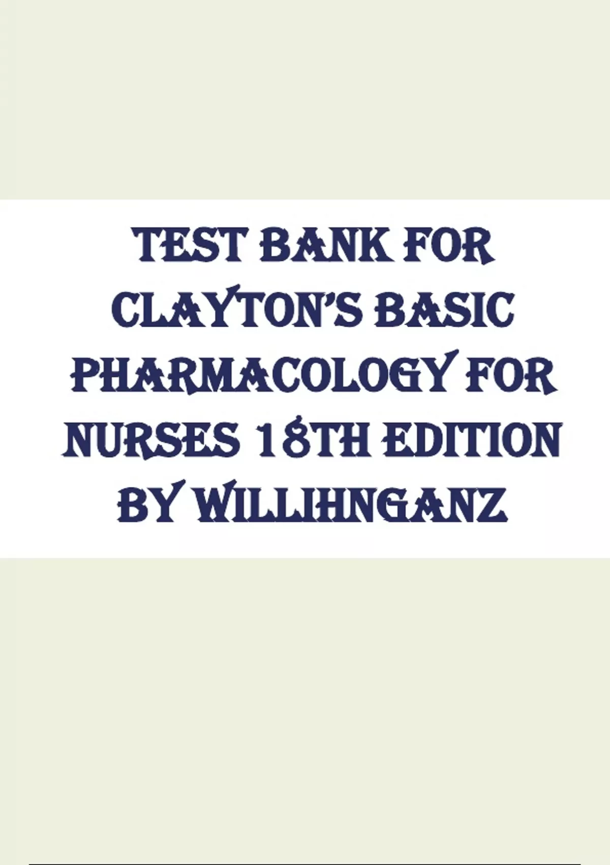 TEST BANK FOR CLAYTON’S BASIC PHARMACOLOGY FOR NURSES 18TH EDITION BY WILLIHNGANZ