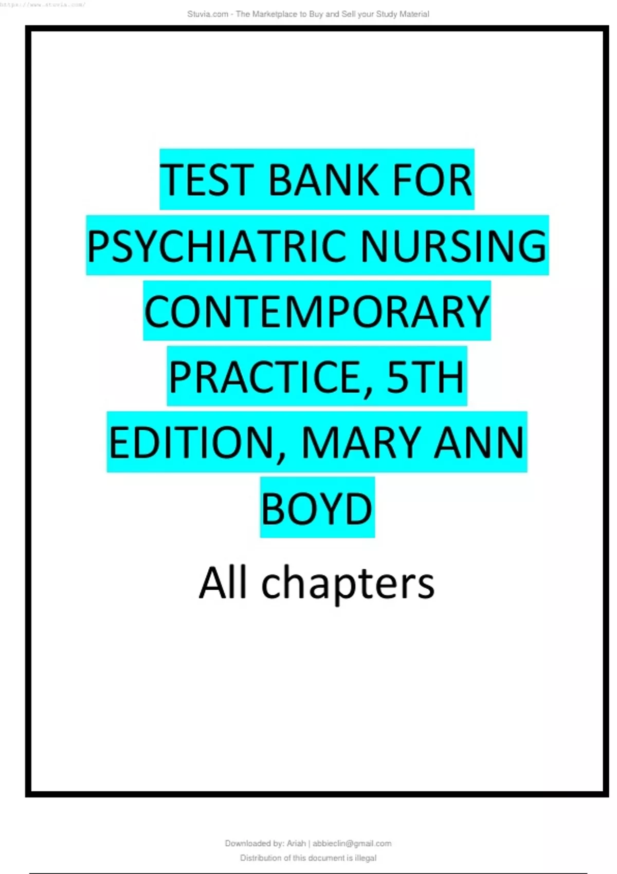 Test Bank for Psychiatric Nursing Contemporary Practice 5th Edition Mary Ann Boyd all chapters.