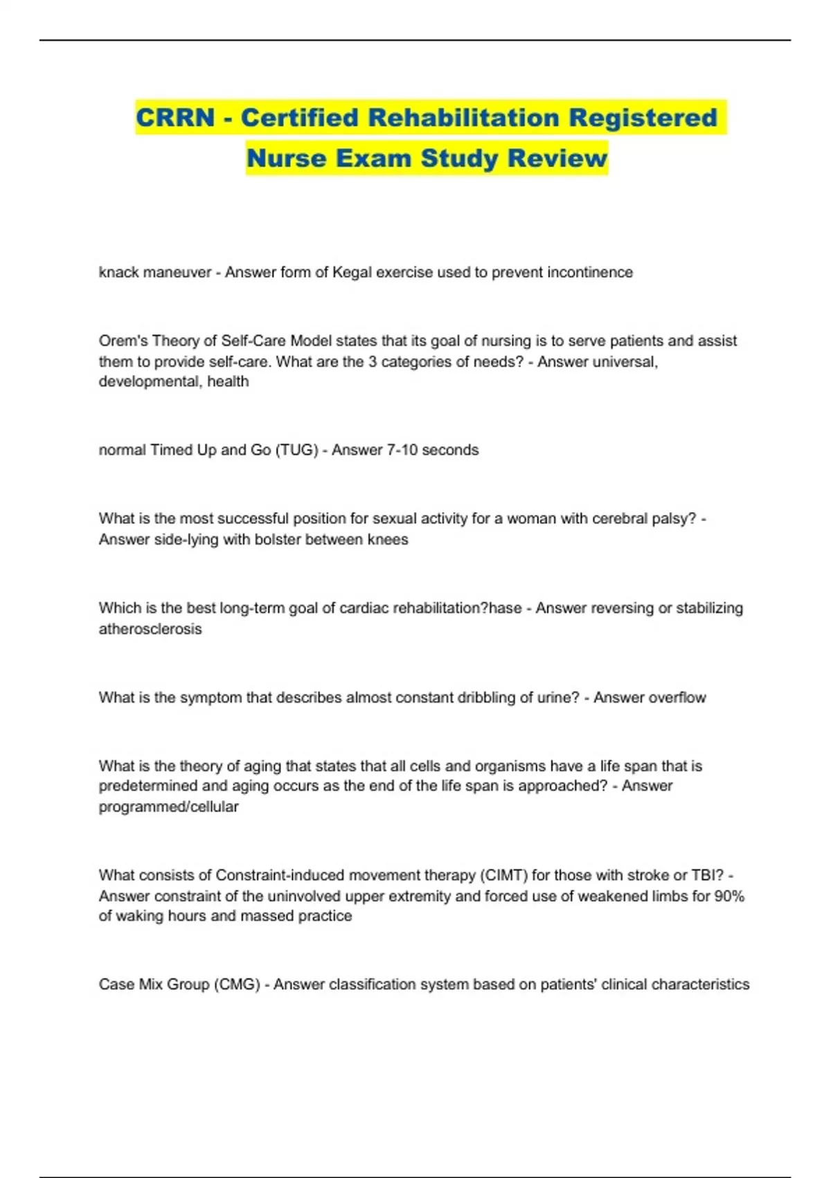 CRRN - Certified Rehabilitation Registered Nurse Exam Study Review...