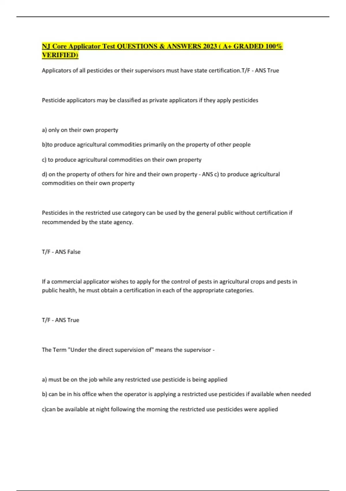 nj core applicator test questions amp answers 2023 a graded 100 verified