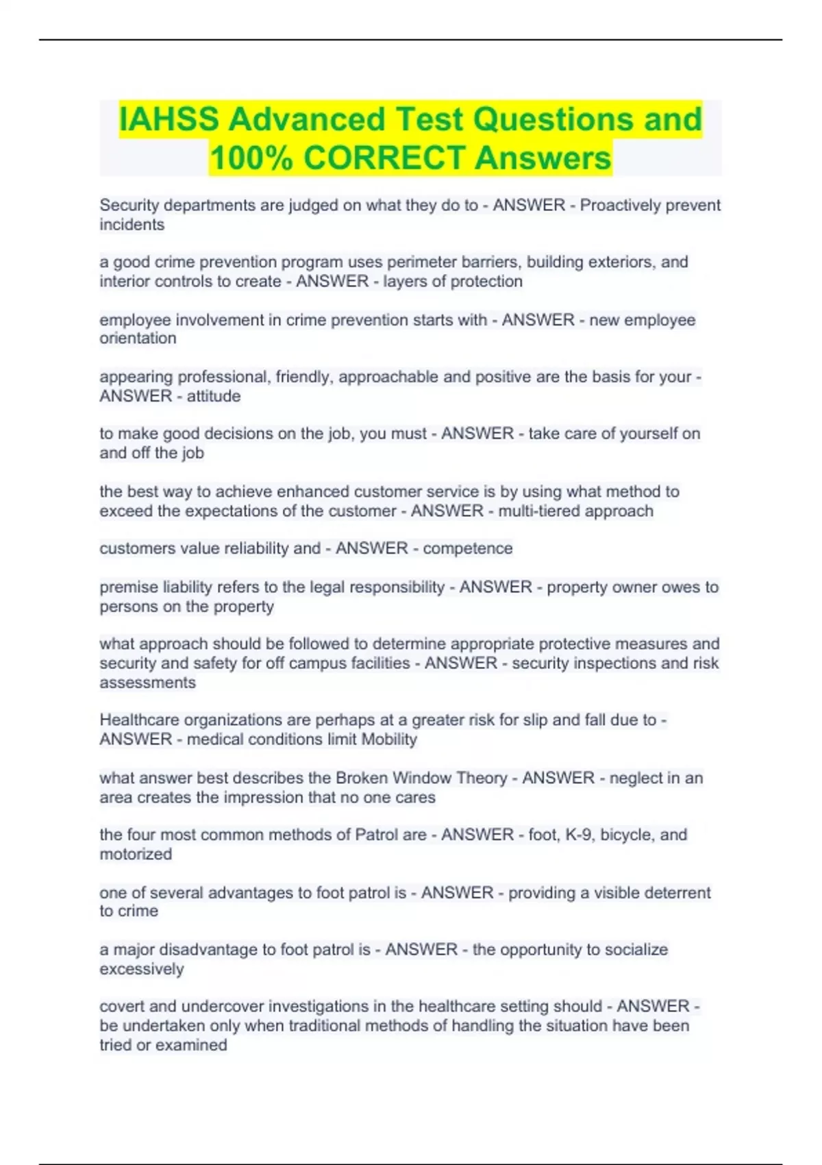 IAHSS Advanced Test Questions and 100% CORRECT Answers