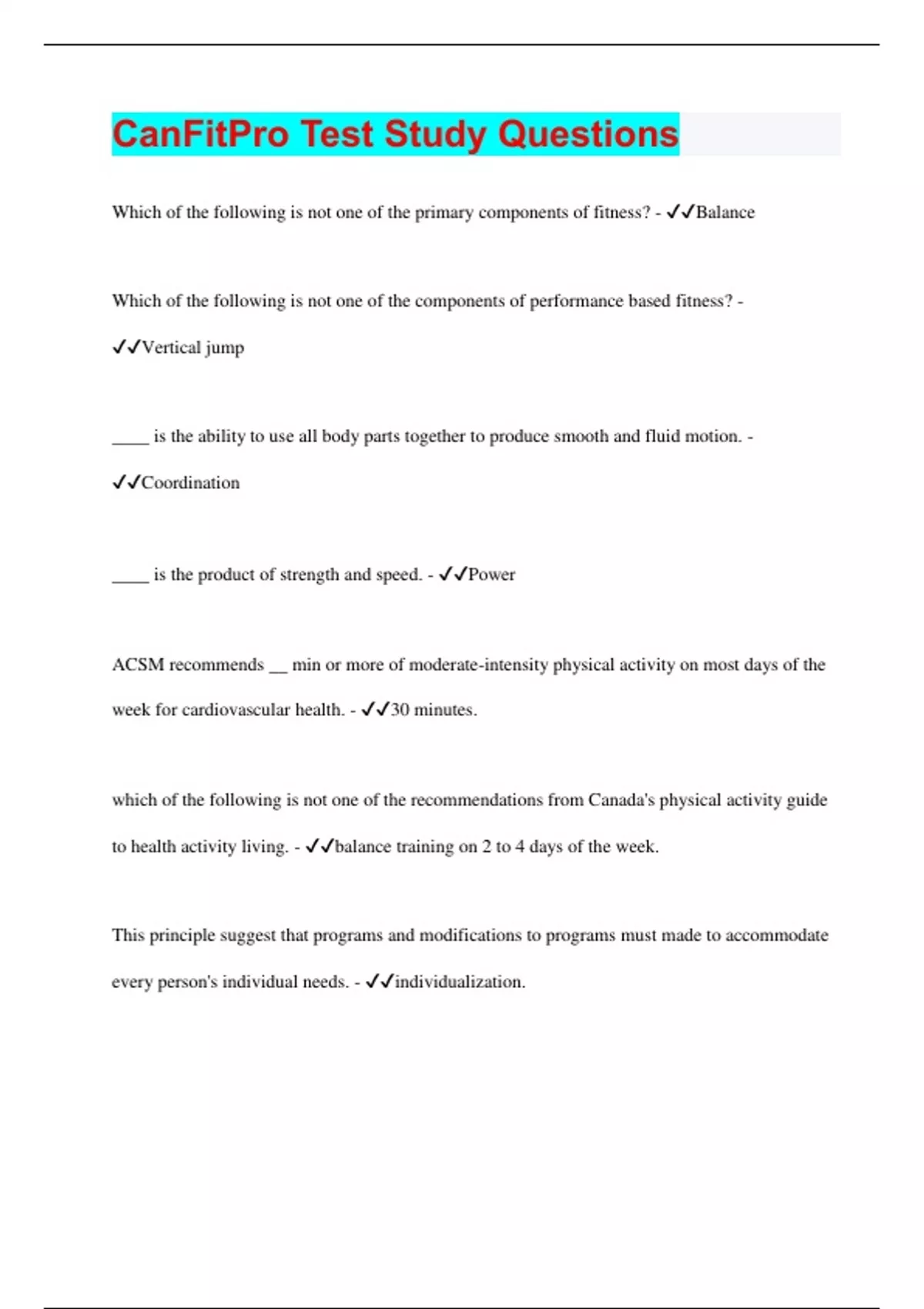 CanFitPro Test Study Questions | 100 Questions with 100% Correct Answers | Verified