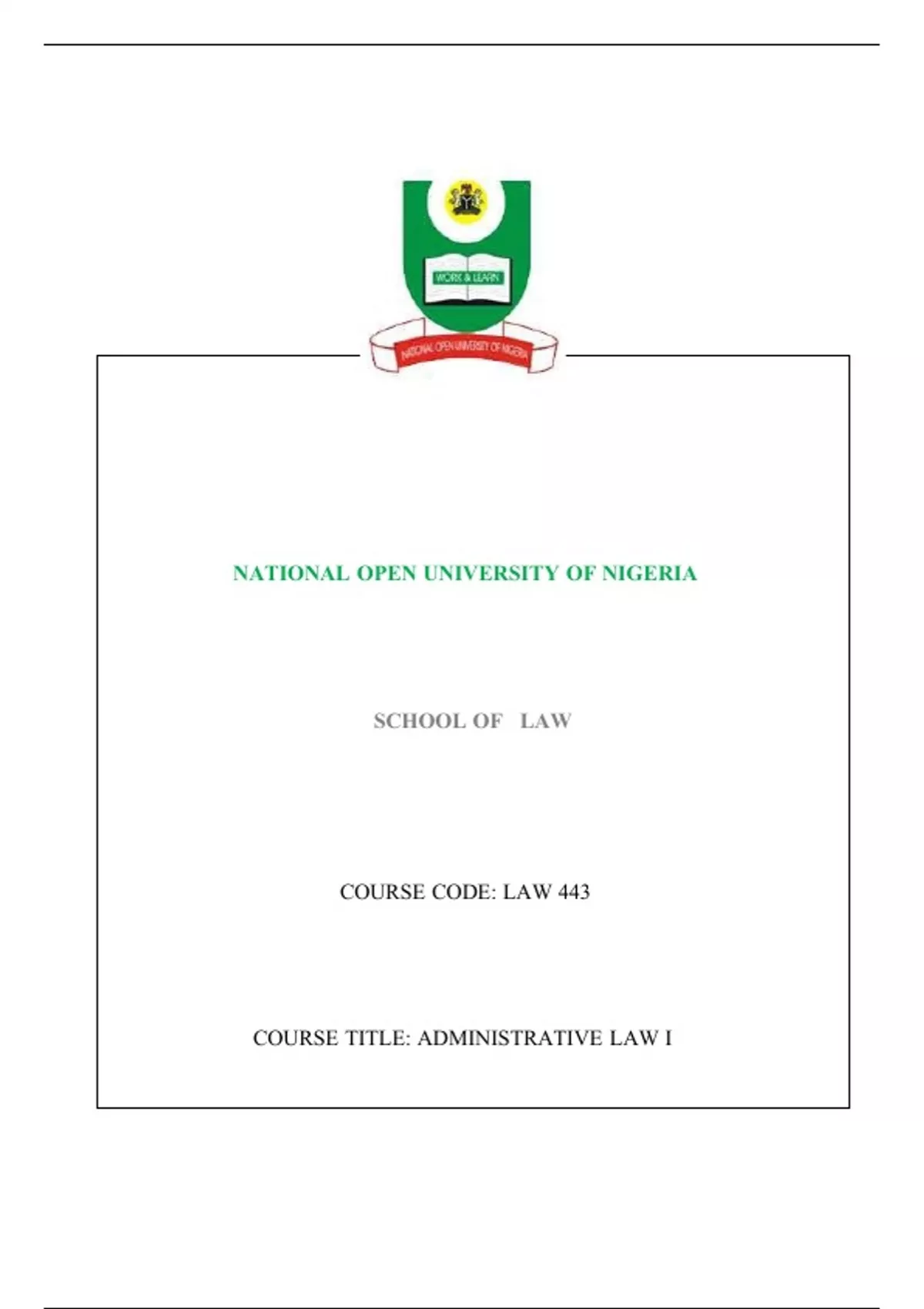 LAW UNITS / DEPARTMENT –UNIVERSITY LECTURE COURSE NOTES