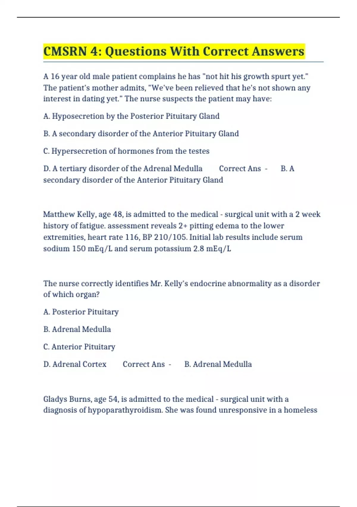 CMSRN 4: Questions With Correct Answers