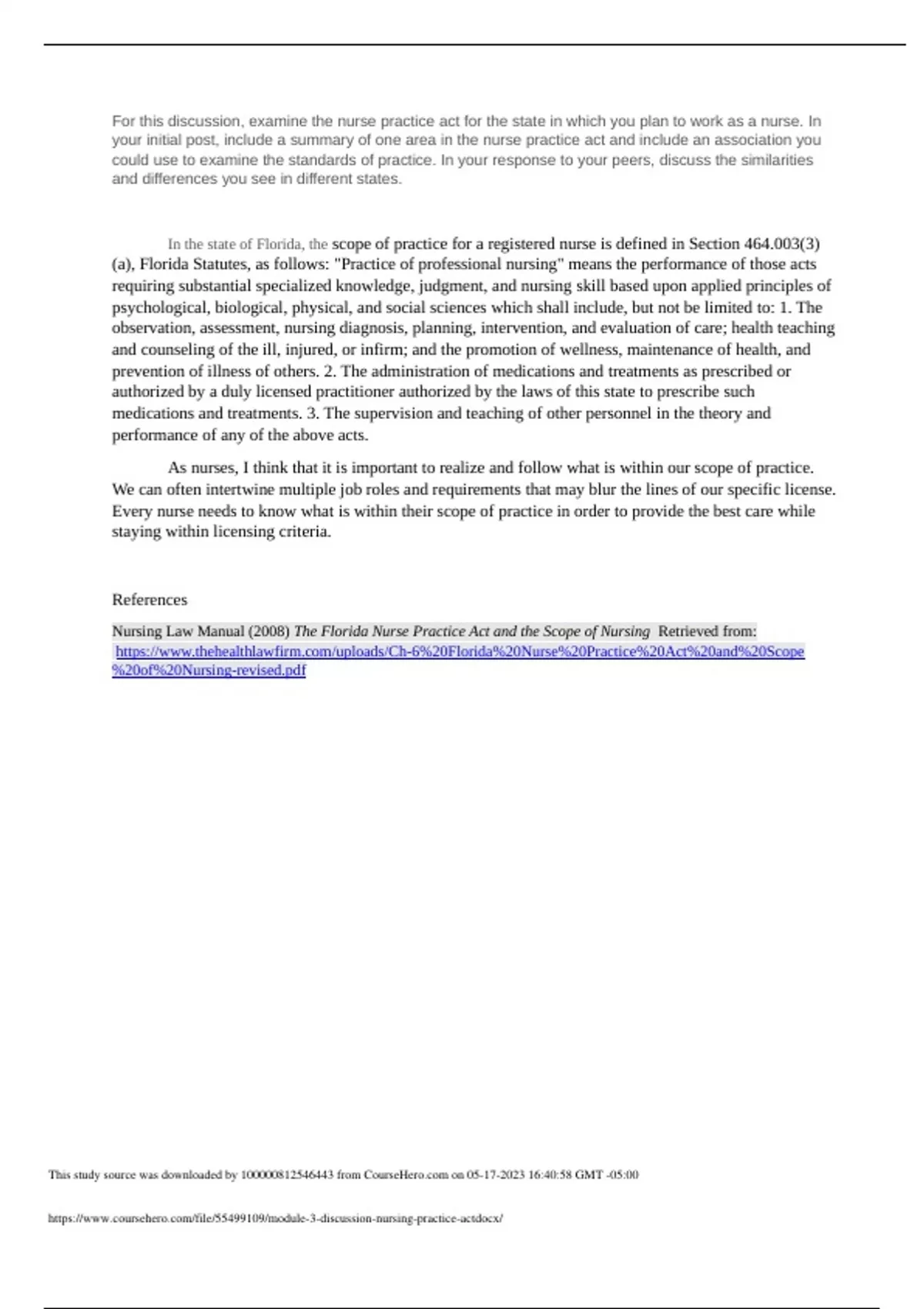 Rasmussen College NUR 1055 module 3 discussion- nursing practice act