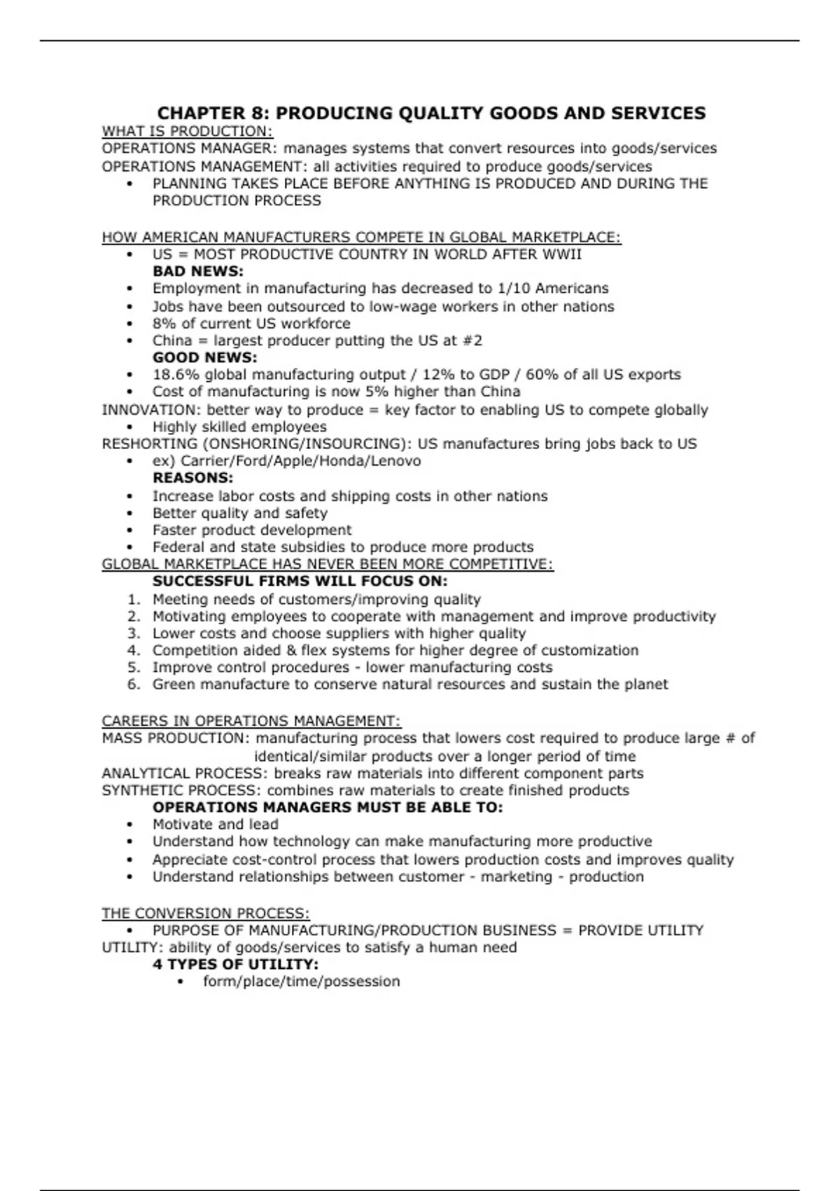 CHAPTER 8: PRODUCING QUALITY GOODS AND SERVICES
