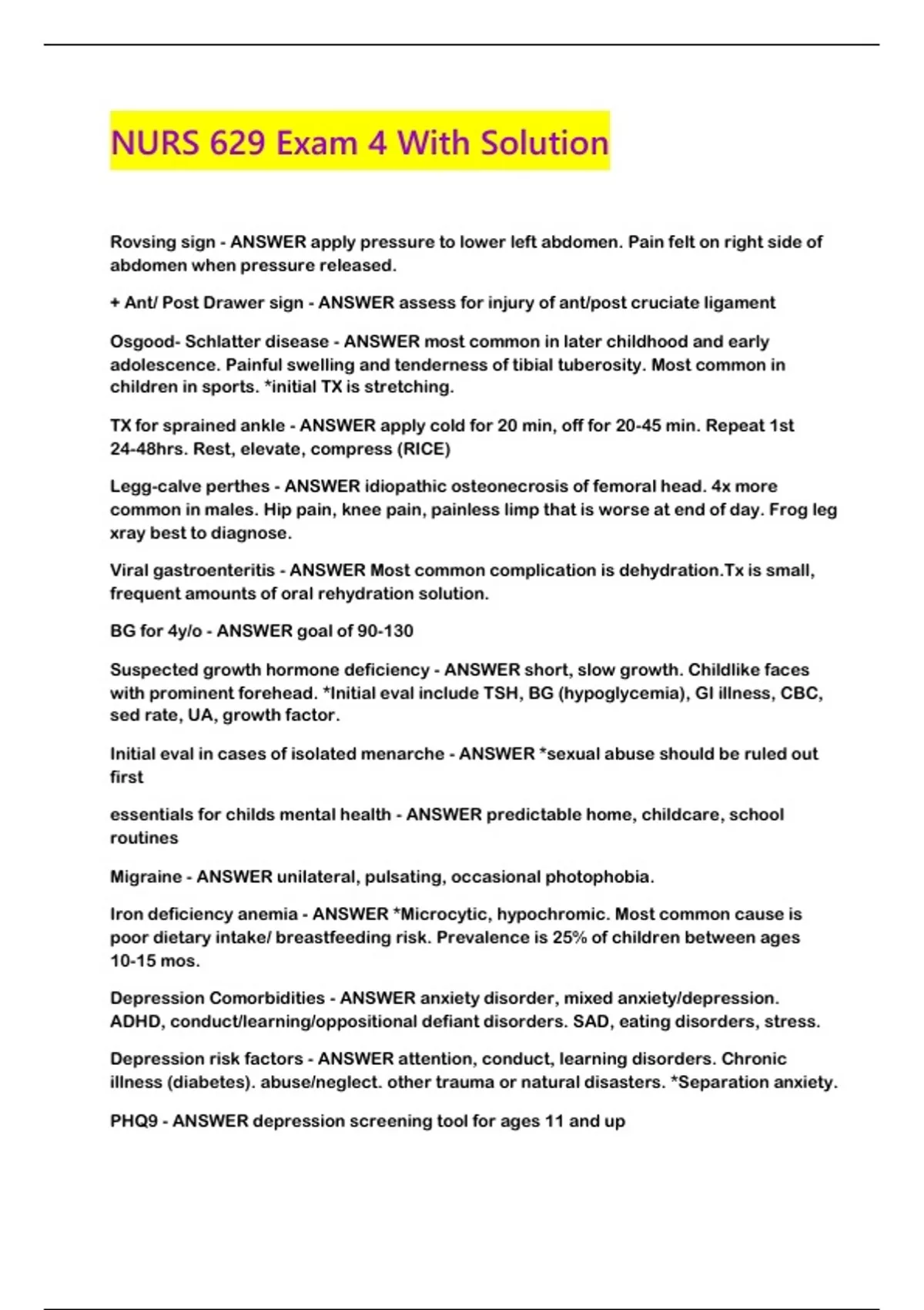NURS 629 Exam 4 With Solution...