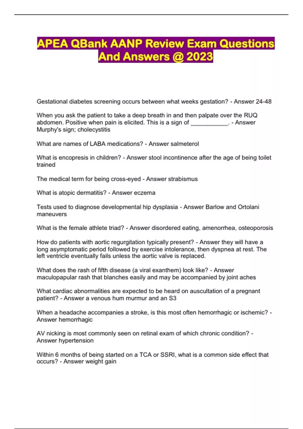 APEA QBank AANP Review Exam Questions And Answers @ 2023...