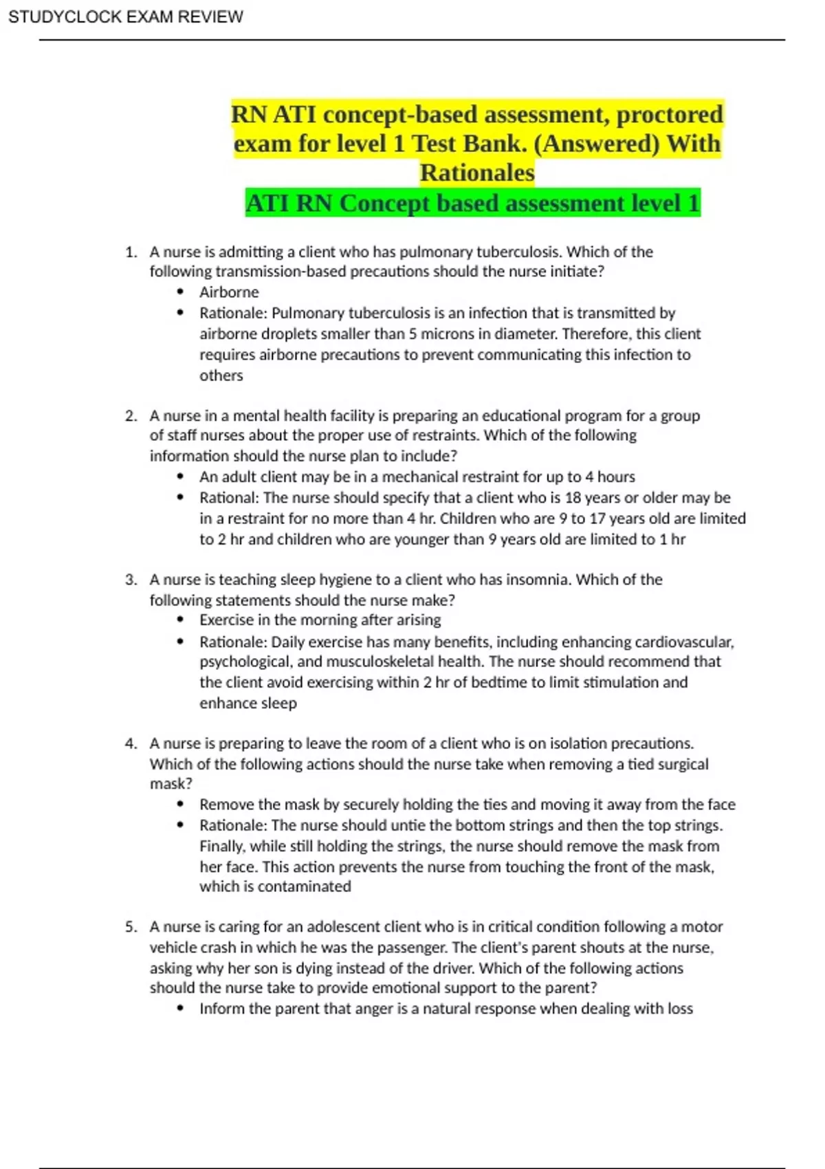 proctoredexam for level 1 test bank answered with rationales