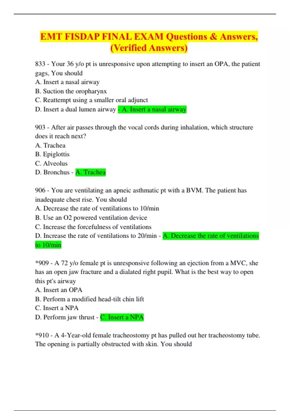 908 - You are using a BVM and an OPA on an apneic pt. Suddenly it becomes