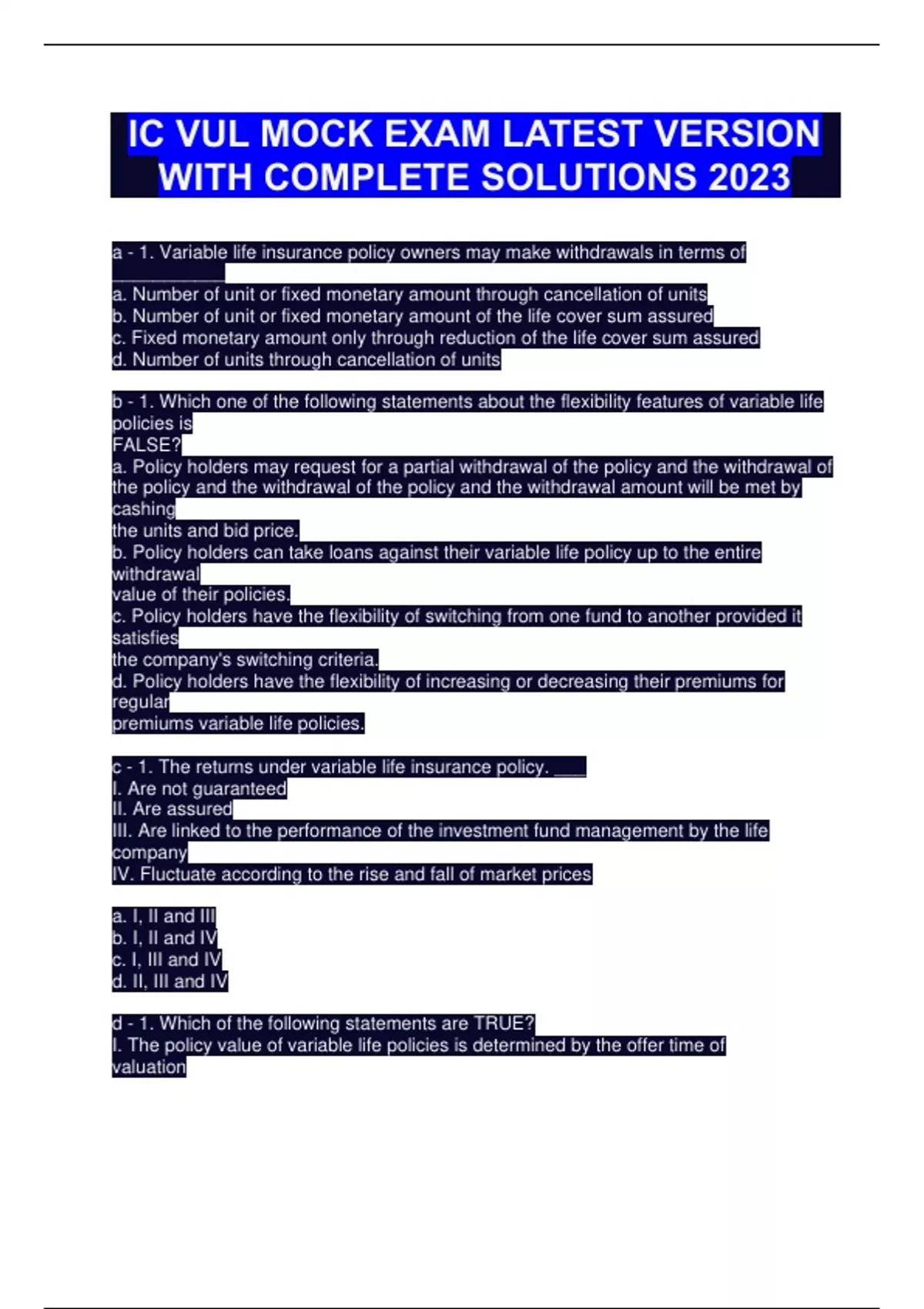IC VUL MOCK EXAM LATEST VERSION WITH COMPLETE SOLUTIONS 2023