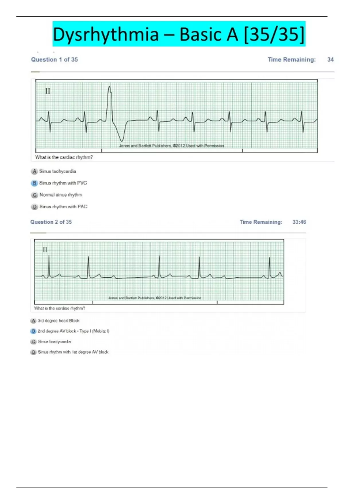 Relias Dysrhythmia Basic A Test Answers Questions and Answers, 2024