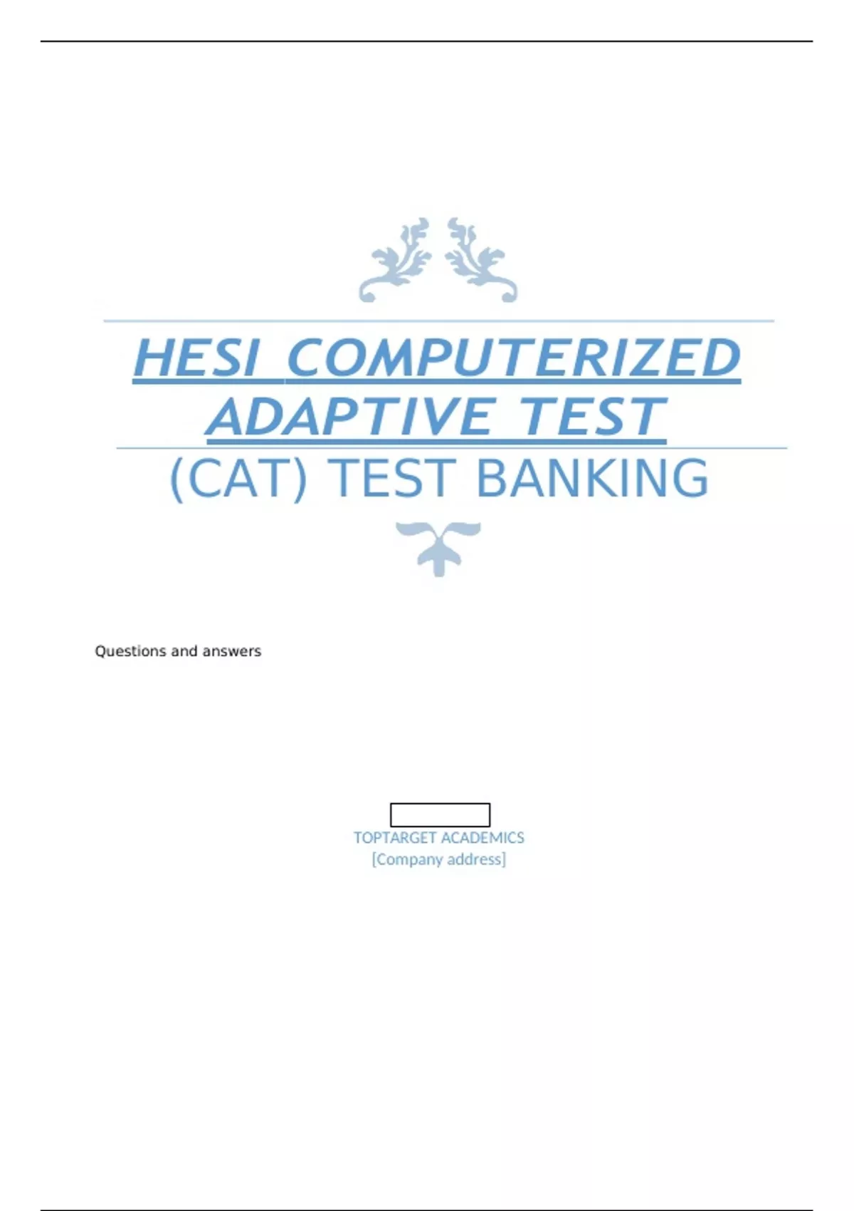 hesi computerized adaptive test cat test banking questions and answers toptarget academics company address hesi computerized adaptive testing 7 cat test bank a nurse is counse