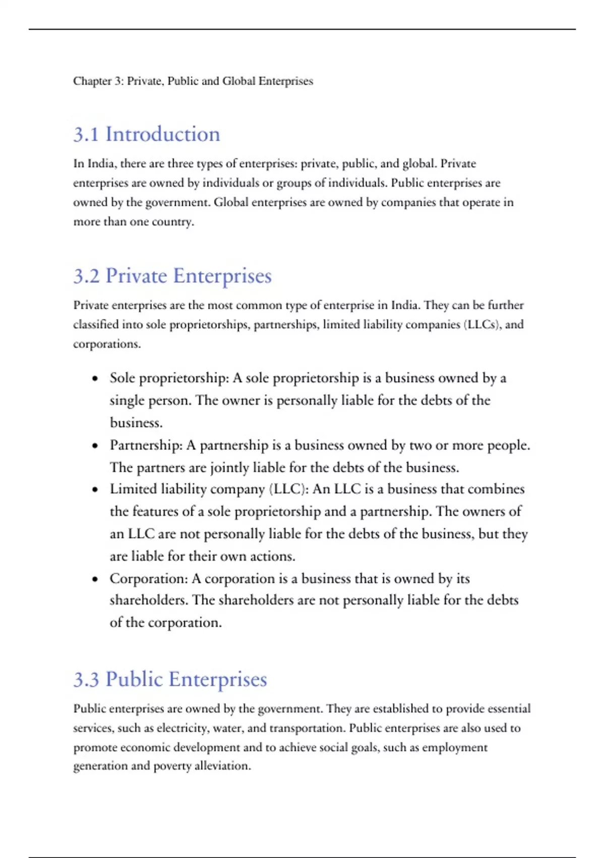 enterprises are owned by individuals or groups of individuals. Public enterprises are