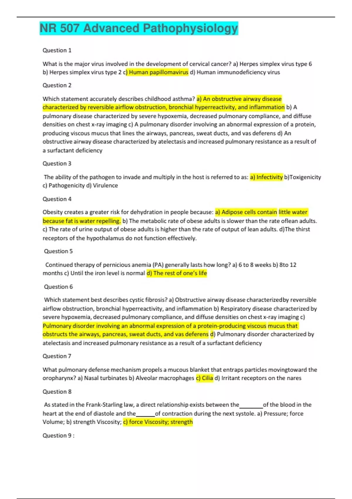 NR 507 Week 8 Final Exam (Latest): Advanced Pathophysiology | SCORE A PLUS