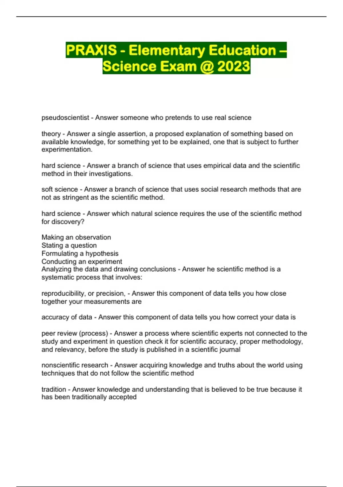 PRAXIS - Elementary Education – Science Exam @ 2023...