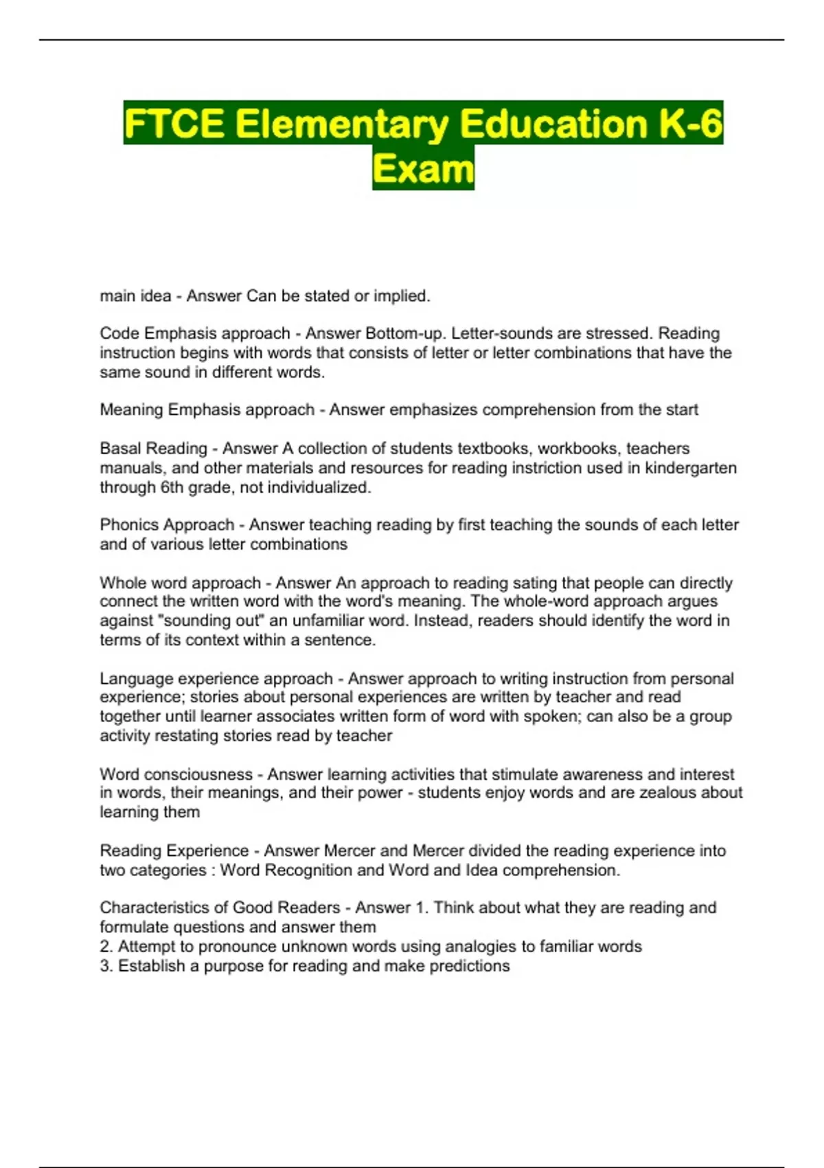 FTCE Elementary Education K-6 Exam...