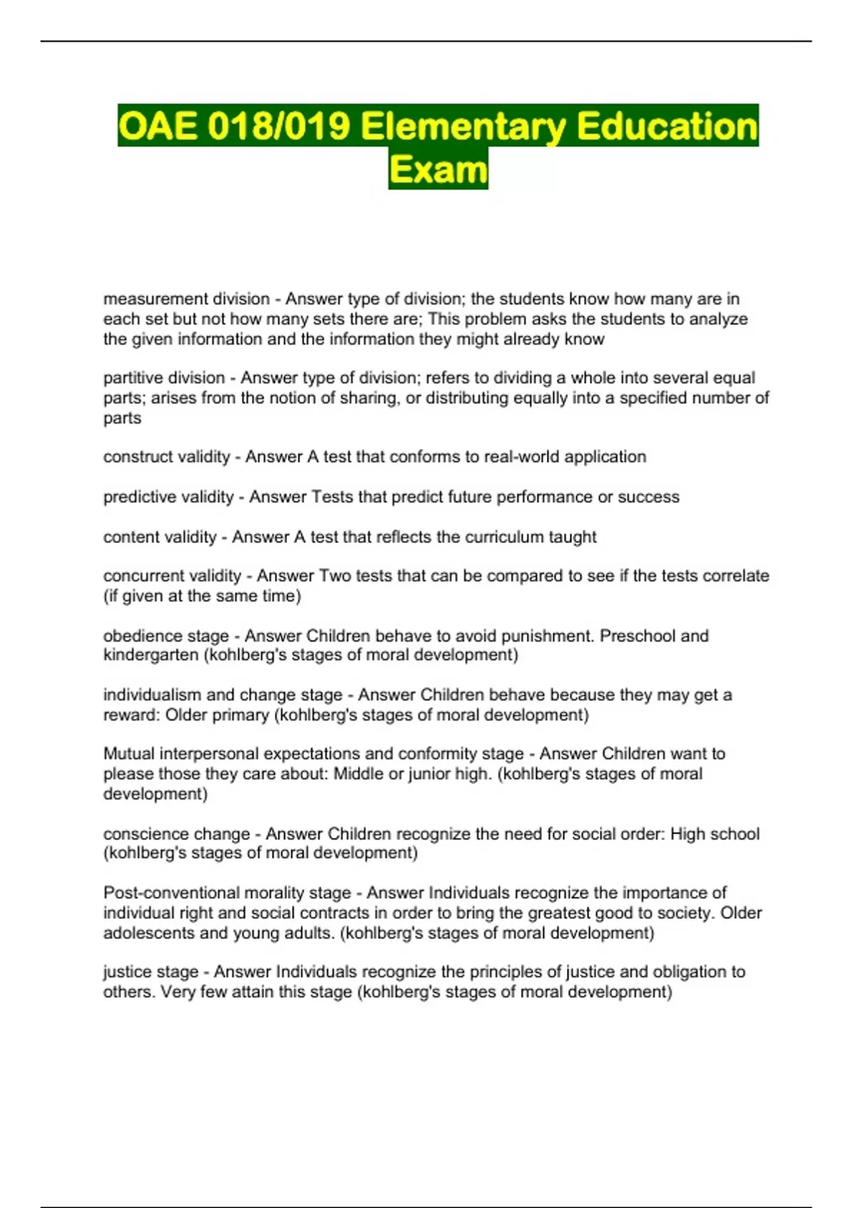 - OAE 018/019 Elementary Education